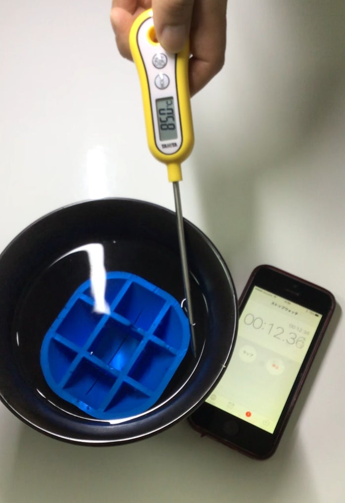 ※熱湯から取り出したスタンド本体は、熱を持ってすこし柔らかくなります。スタンド本体が冷めるまでそのまま放置してください。