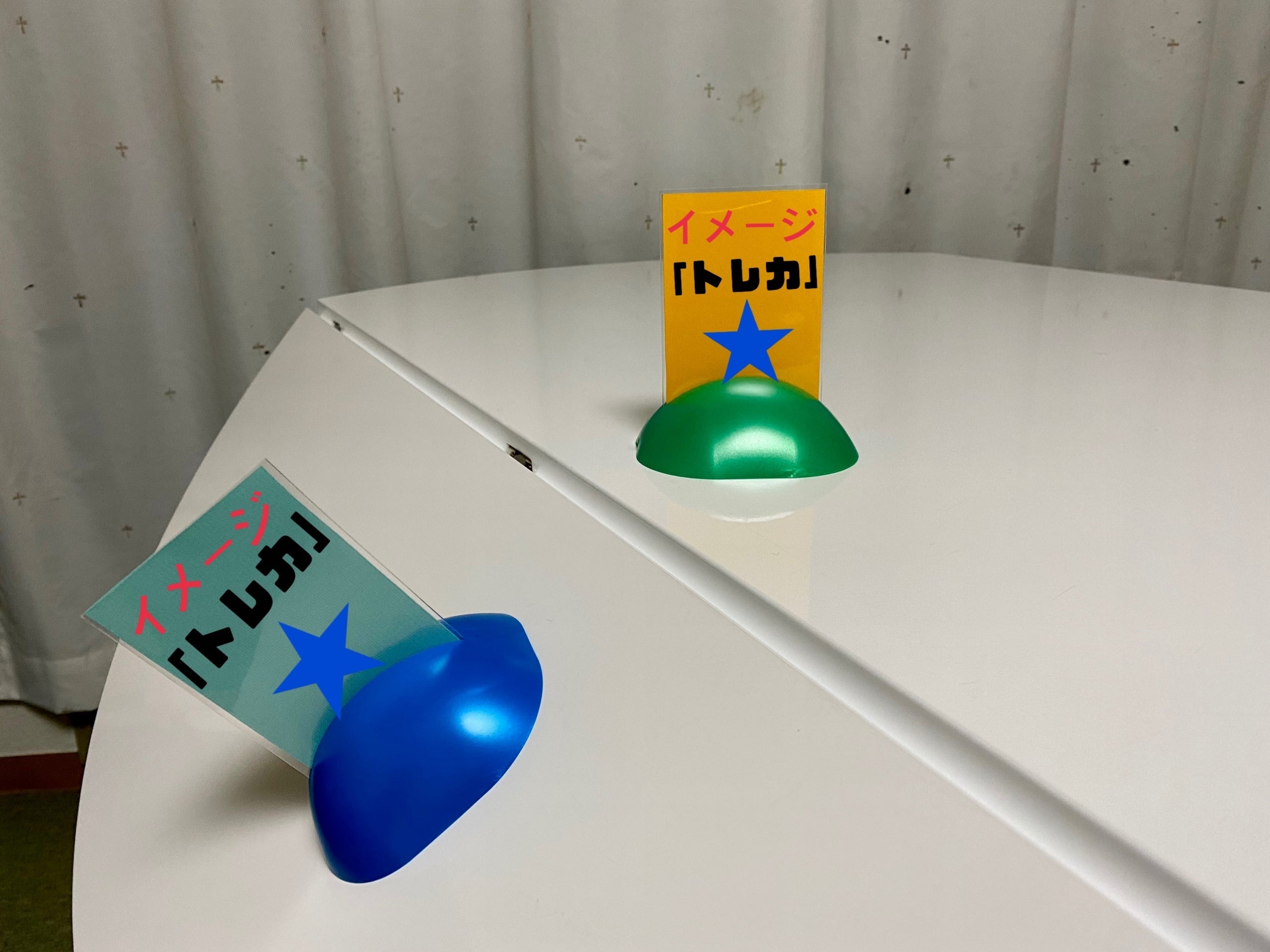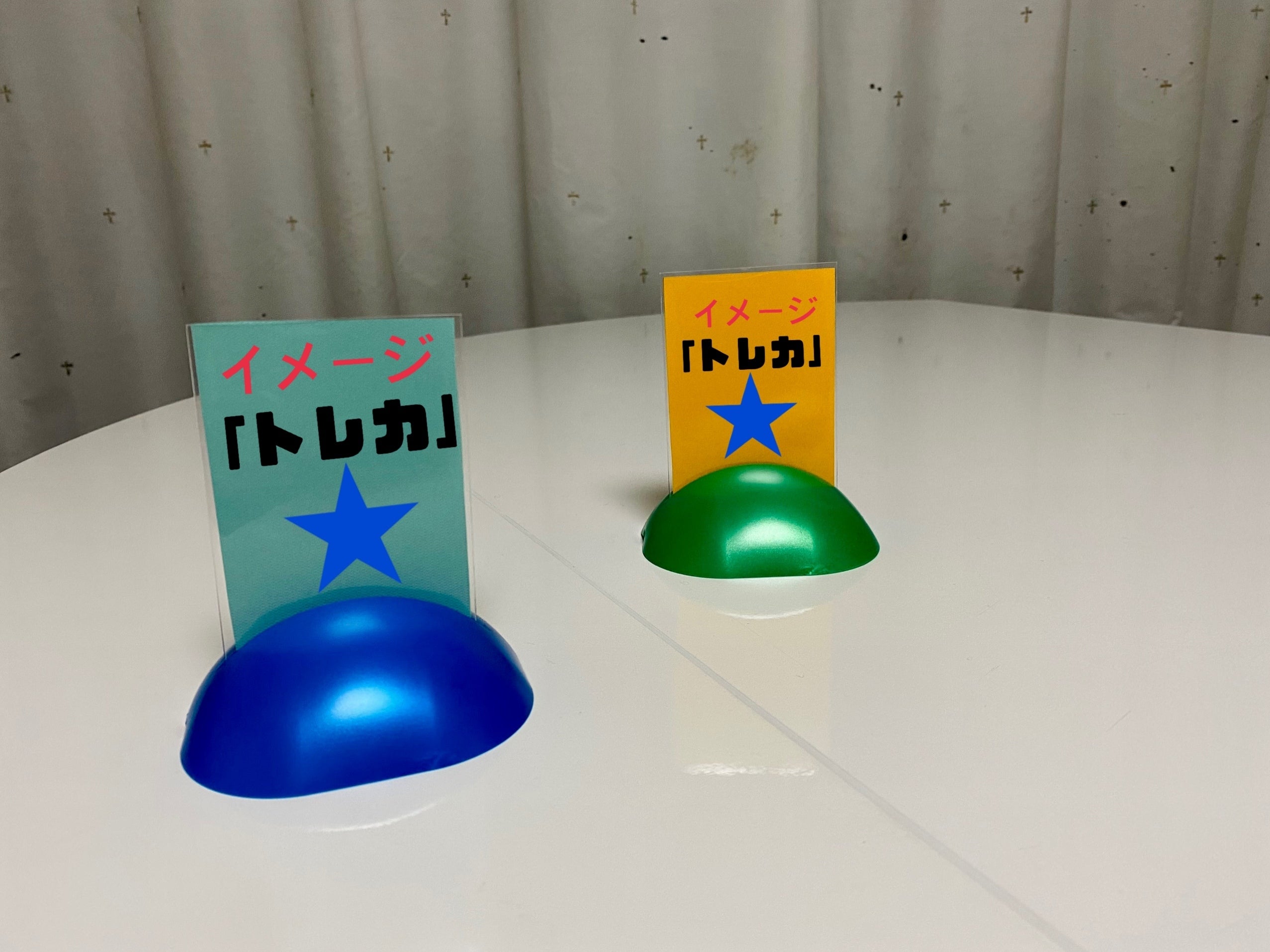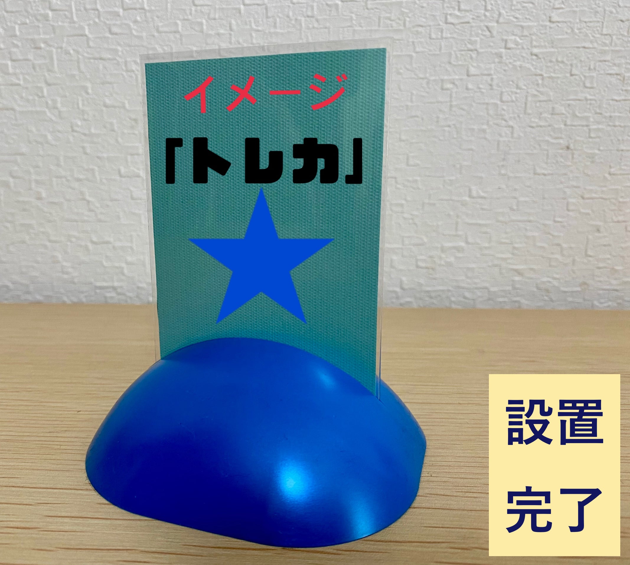 *写真立てのような背もたれのあるスタンドにカードやシールを置く