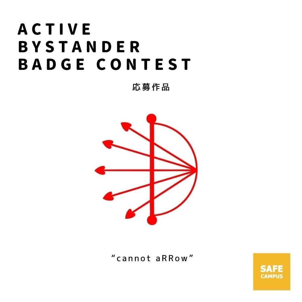 「タイトルはcannot allowとarrowをかけています。5つの矢でDの形状の弓を引くデザインで、「5つのD」に基づき性暴力を防止するべく行動するという意思を表します。また、矢先のハートで、被害者の気持ちを最優先として被害者の心に寄り添うという意思を表します。バッジを作りやすいシンプルなデザインであることや、どんな場面でも付けられる誰もを取りこぼさないデザインであるという2点も重視しました。」