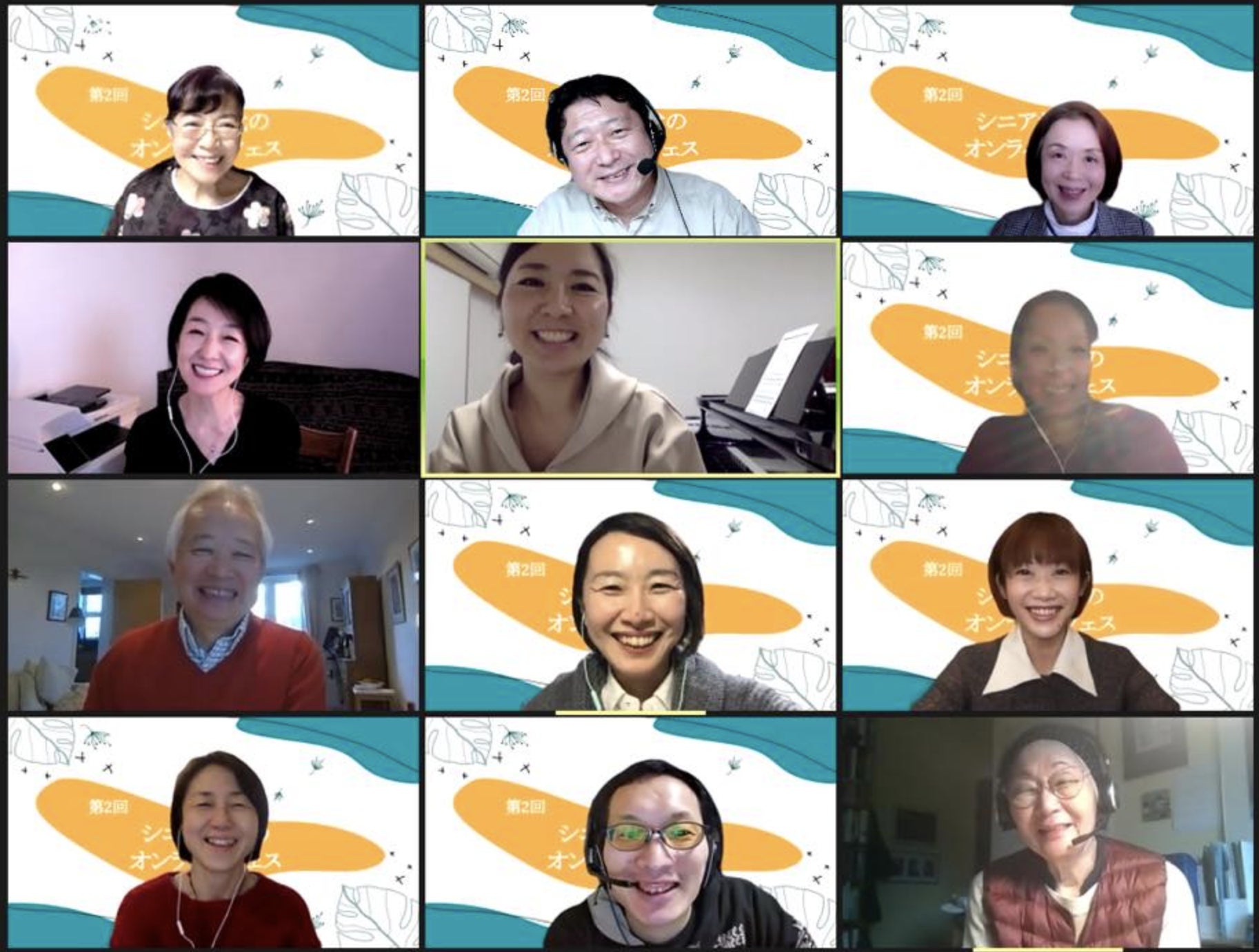 夕方以降の時間帯では、時差により、参加者の半数以上が、ロンドン、スイス、ドイツ、ベルギーなどにお住まいの日本人シニアでした。