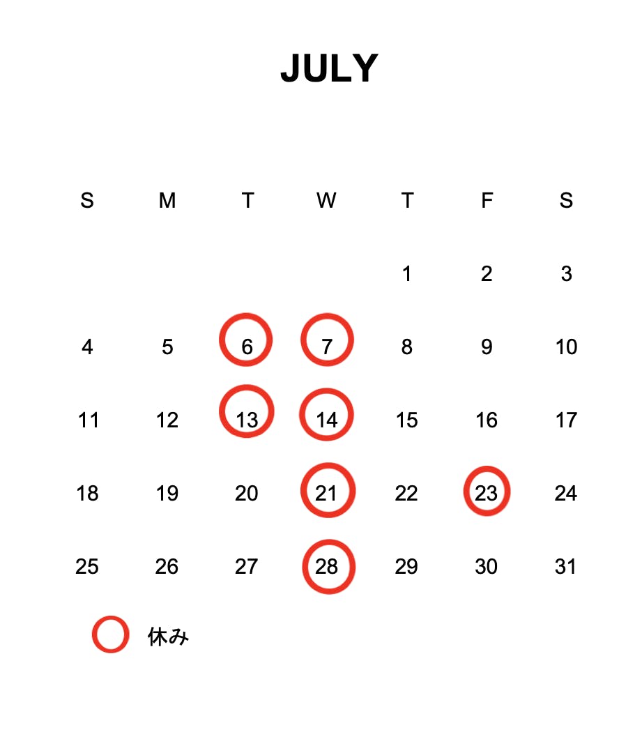 7月、8月の営業日となります。