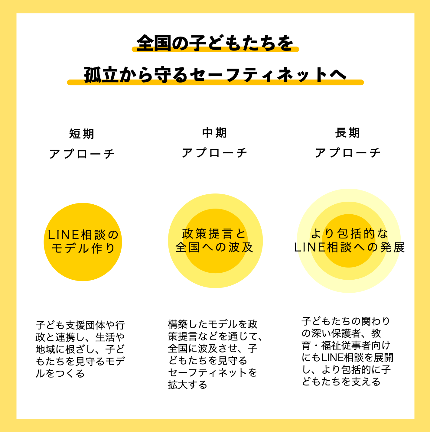 そこで、私たちは子どもたちの声に耳を傾け、彼ら彼女らの心に寄り添うLINEの相談窓口をさらに発展させていくためにこのプロジェクトを立ち上げました。