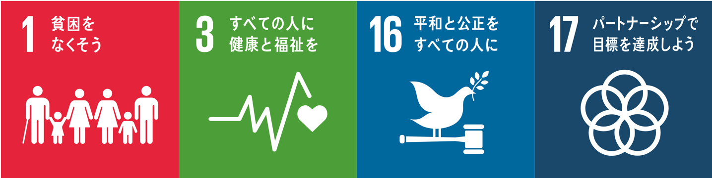大阪府は、新型コロナウイルス感染症の影響で顕在化した社会的な課題に対して、「誰一人取り残さない」というSDGsの理念を踏まえ、民間の資金提供先である村上財団とNPO等との協働により課題解決を図る取組みを実施しています。また、今回のプロジェクトではSDGsの中でも以下の4つのゴールを目指して取り組んでいきます。