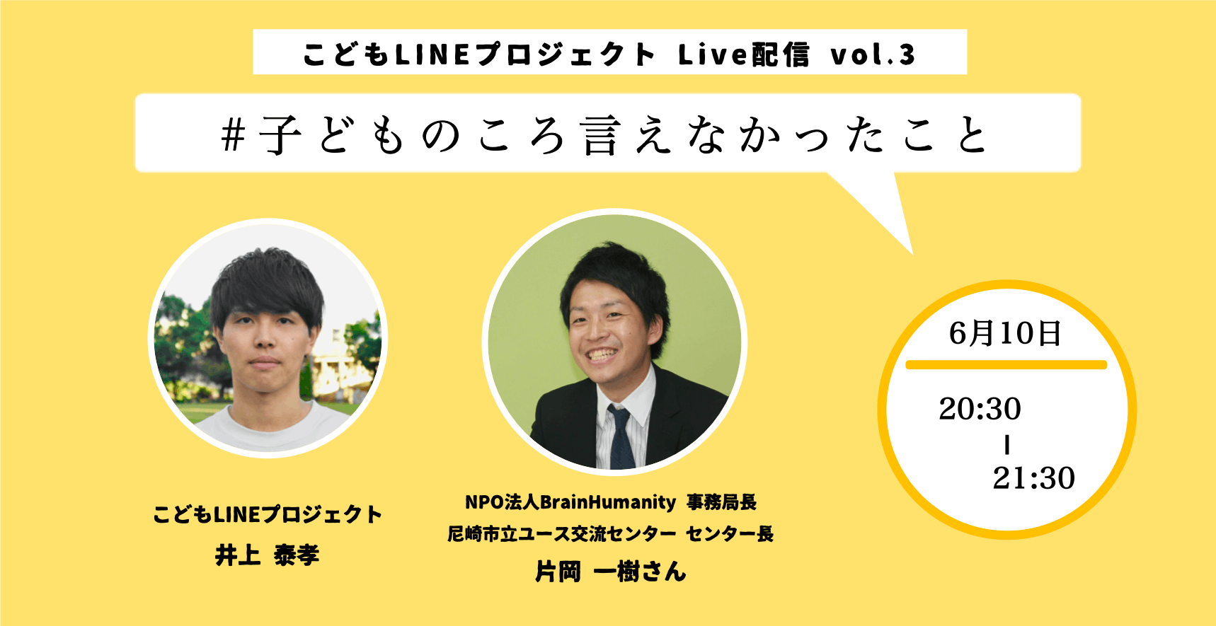 Live配信企画『 #子どものころ言えなかったこと 』のvol.3を6月10日の20:30〜21:30で配信します!