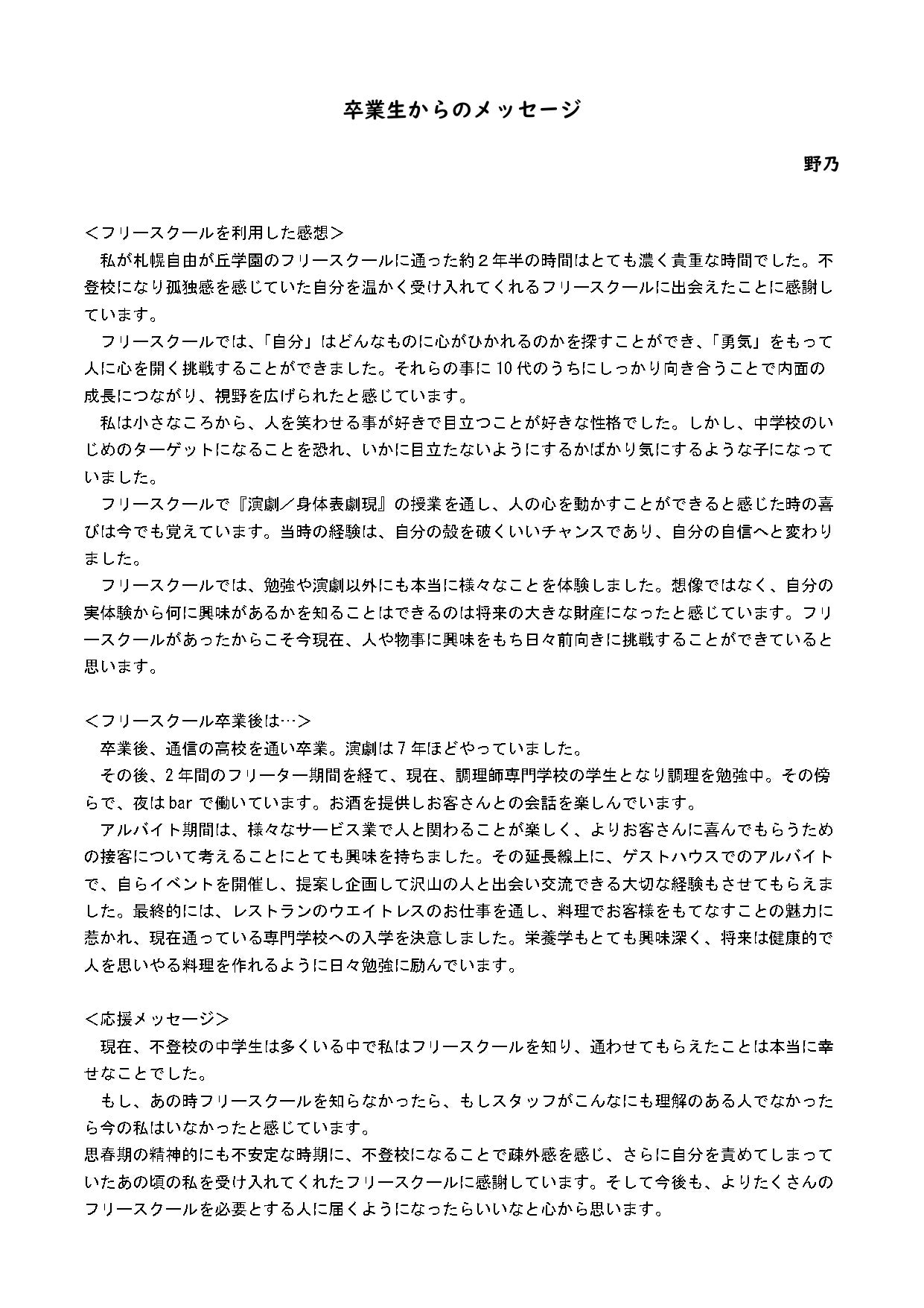 卒業生の野乃さんが早速、応援メッセージを寄せてくれました!ぜひご覧ください。