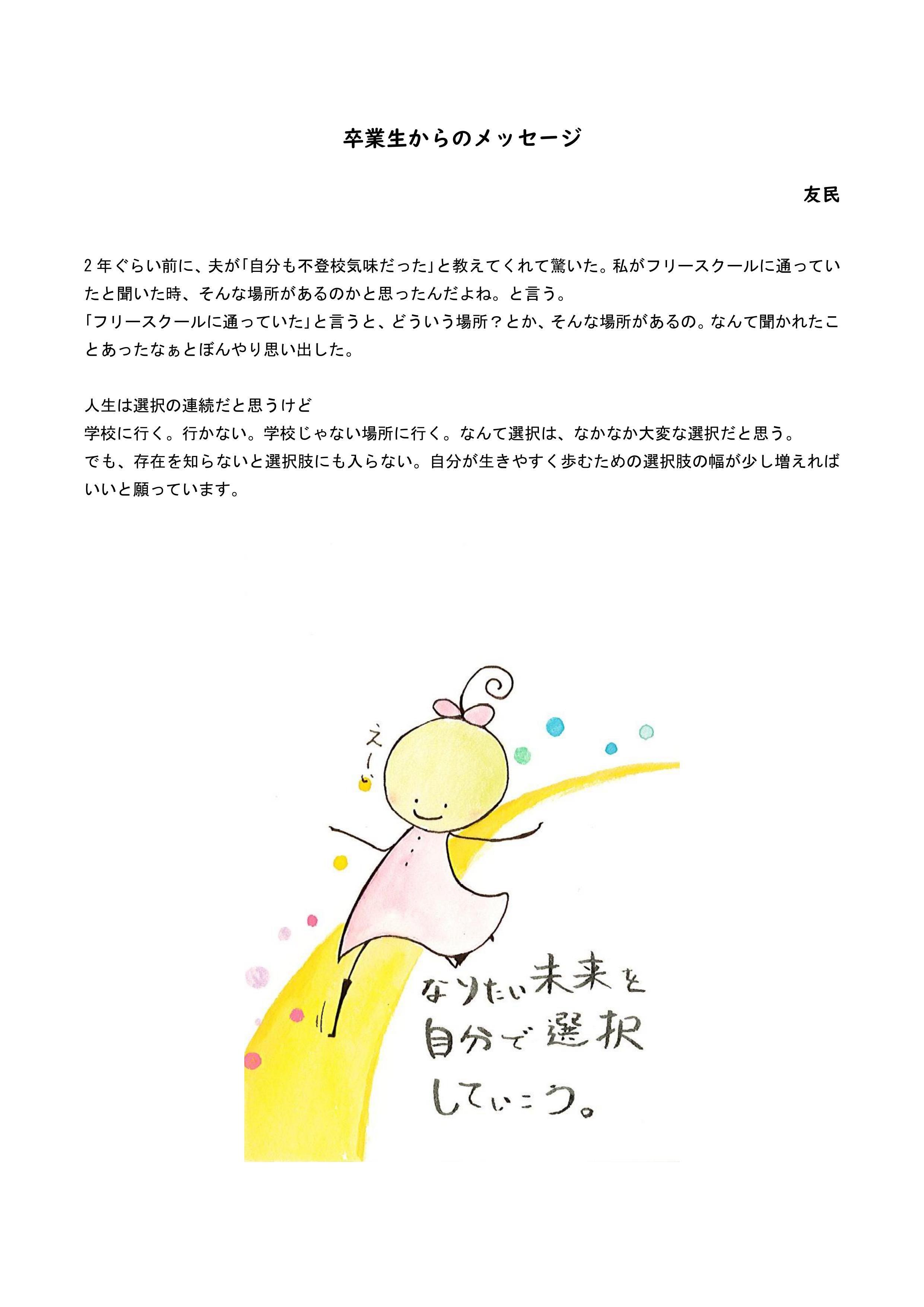 卒業生の友民さんからメッセージをいただきました!素敵なイラストも描いてくださっています。ありがとうございます!