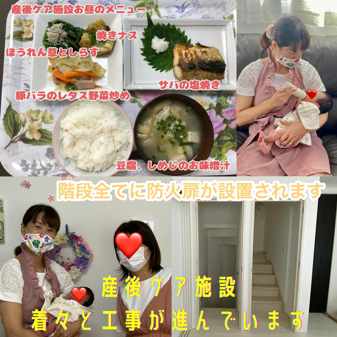 6月から産後ケア施設の防火扉などの工事も始まり、7月の施設運営開始に向けて、着々と準備が進んでいます。