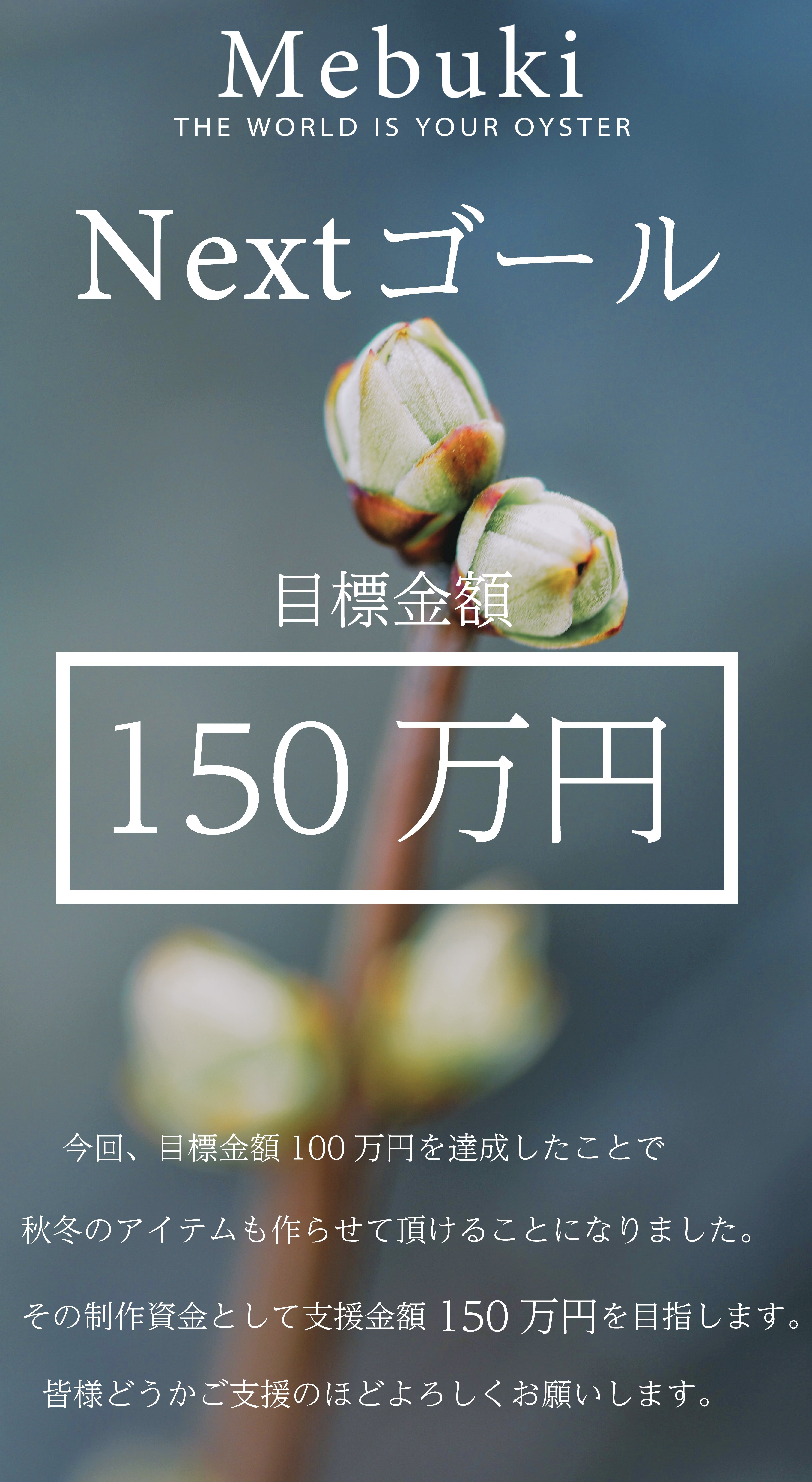 僕たちはNEXTゴール150万円に挑戦いたします!太田市のニット産業の復活のため、Mebukiの次なる挑戦のため皆様どうか力を貸してください。