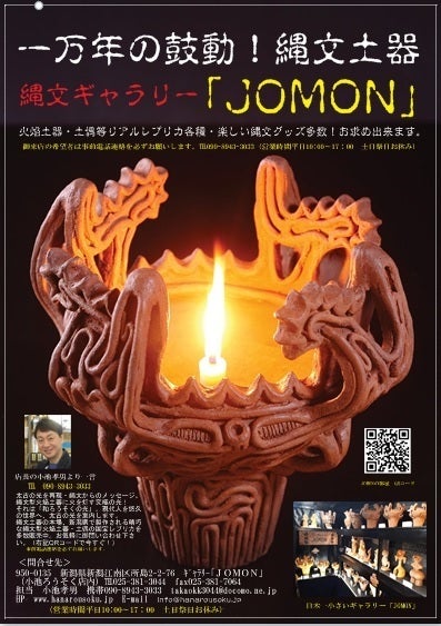 新潟市江南区にある縄文ギャラリー「JOMON」。2019年2月6日にOPEN。現在、国宝縄文商品の等身大のリアルレプリカを中心に、オリジナルミニチュアの縄文土器・土偶など陶器にそして細部にこだわった商品を開発しています。現在、某有名博物館のミュージアムショップやネット通販など縄文文化促進の為に、また縄文ファンの要望に応えるべく幅広く活動を広げています。