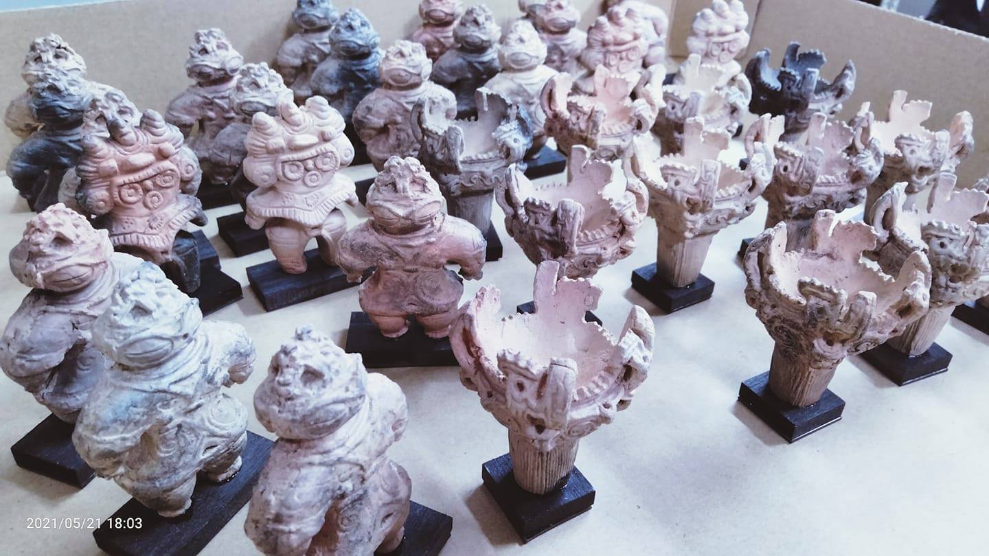 ミニチュア火焔土器・遮光器土偶・ビーナスなど手作り陶器製品なので慎重に作業しないと破損します。