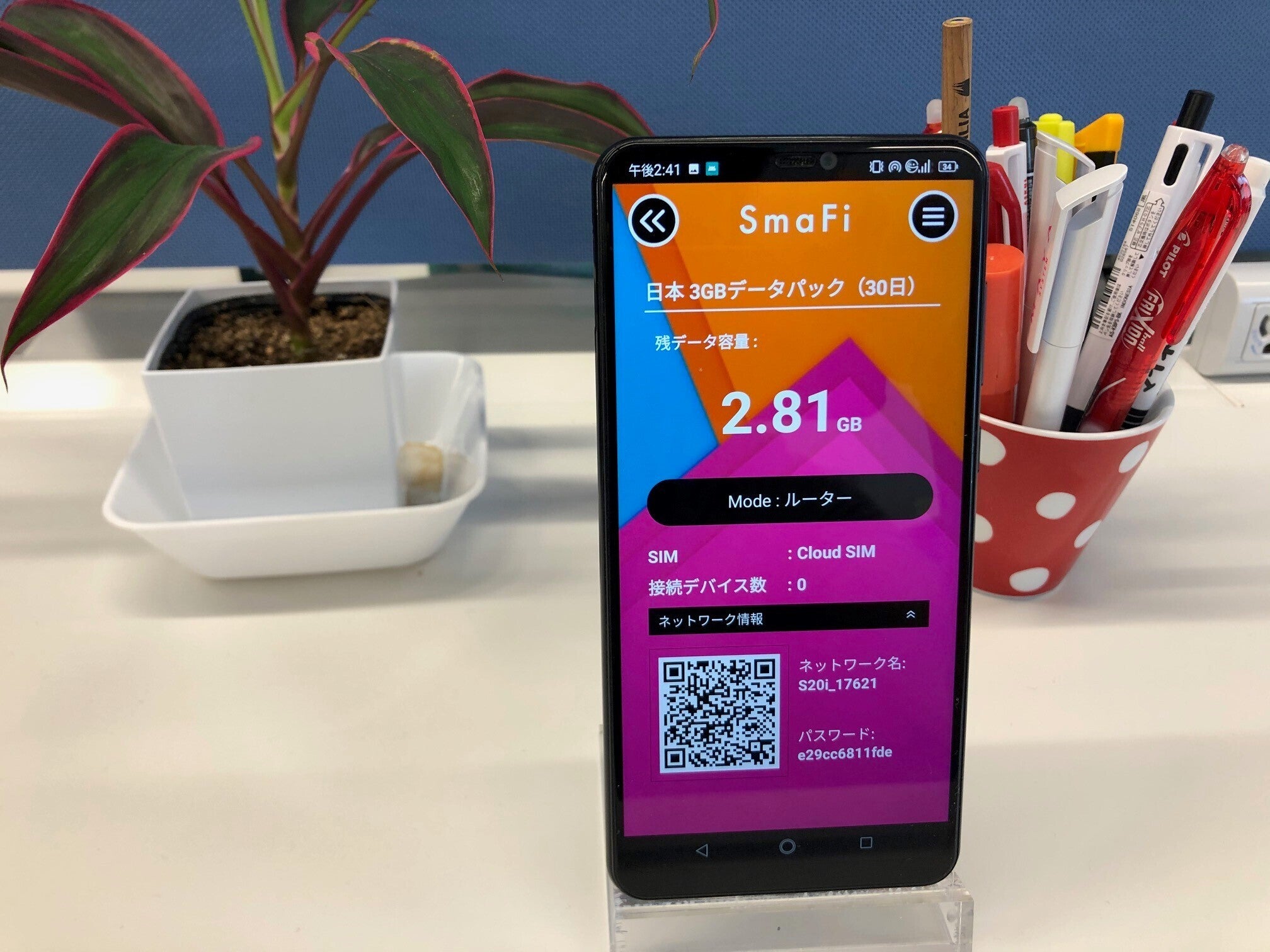 スマファイウィジェットをタップ > 「ネットワーク情報」 > 「ネットワーク名」「パスワード」が表示されます。
