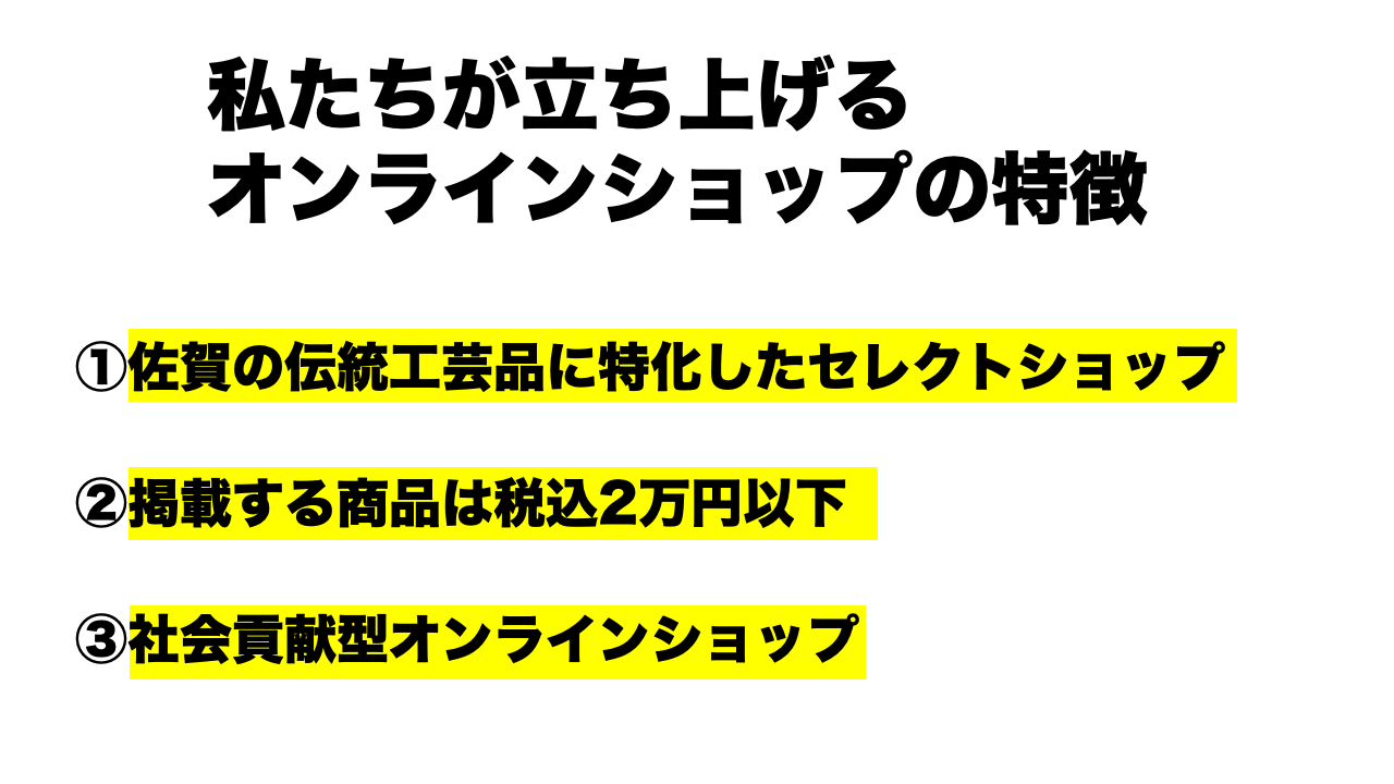 オンラインショップでは佐賀の伝統工芸品のみを取り扱います。佐賀の伝統工芸品の魅力を日本中にアピールします!