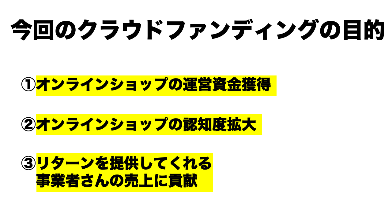 ①オンラインショップの運営資金獲得