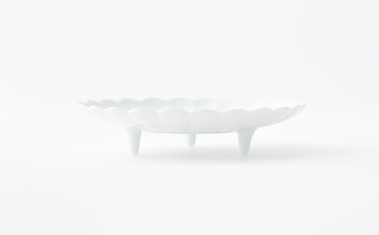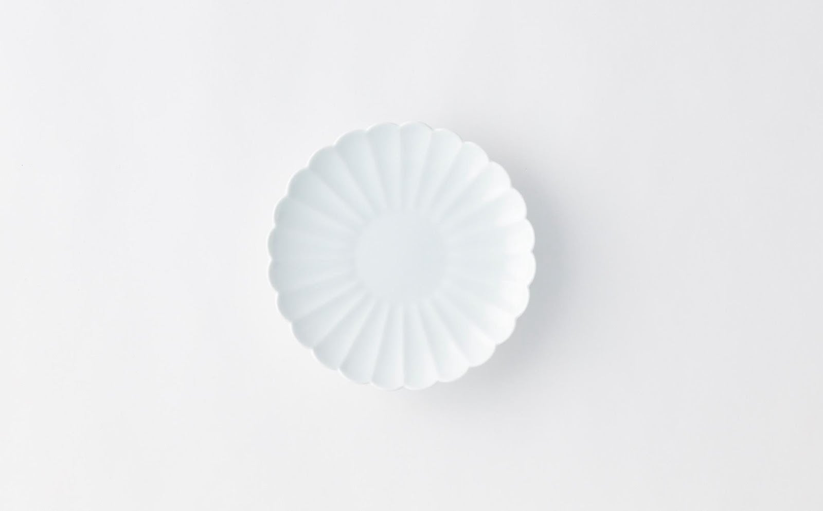 シンプルでモダンな印象を受ける白磁の菊型皿です。