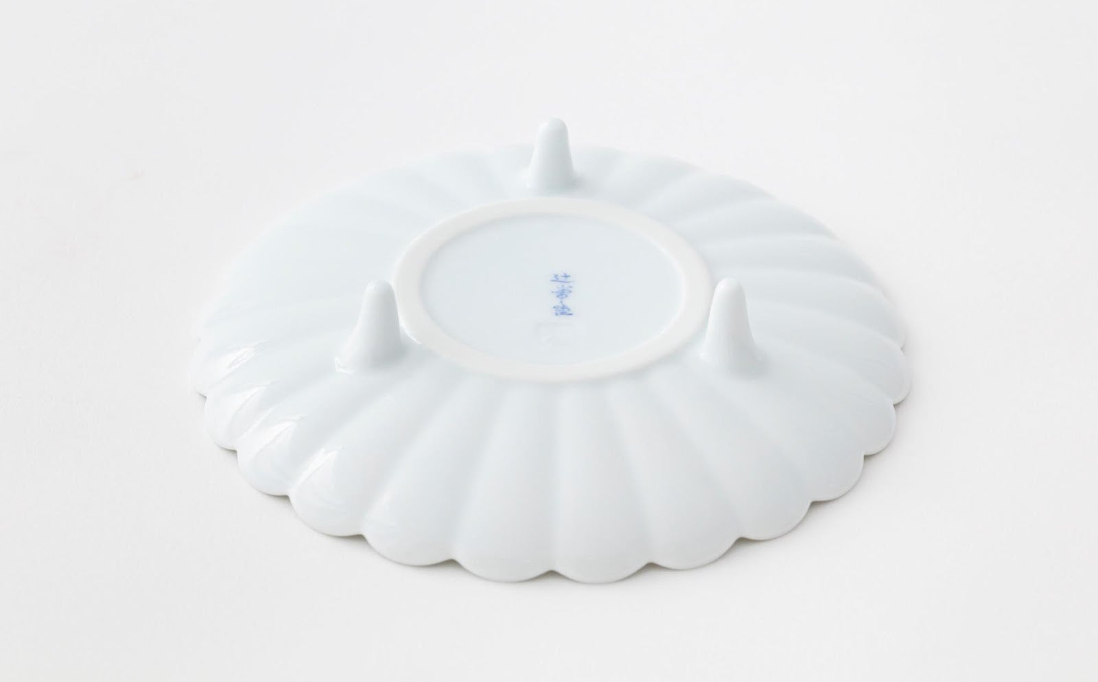②有田焼/辻常陸窯/白磁菊型三足銘々皿