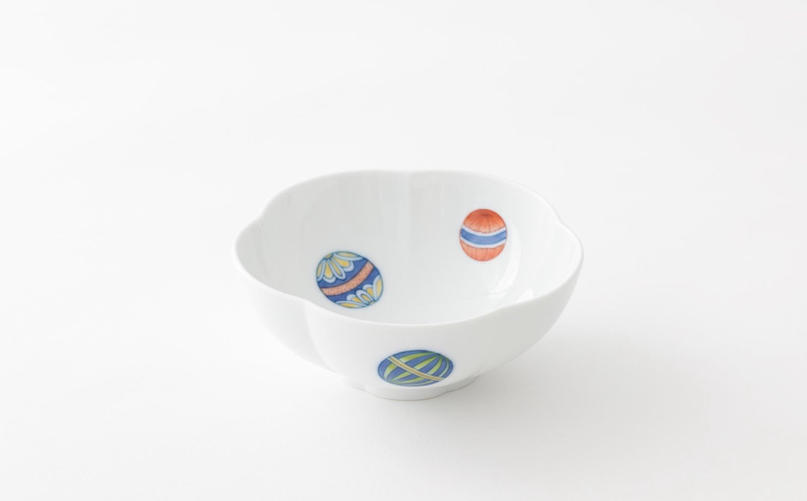 柔らかなフォルムの梅型小鉢に上品で可愛らしい手まり紋が施されています。