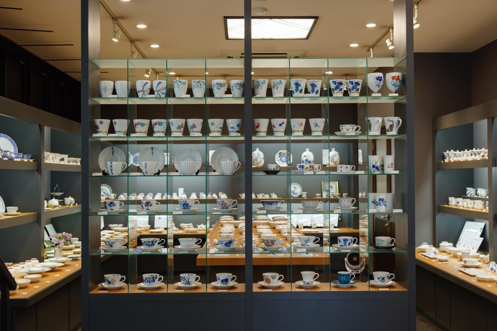 ショールームに入るとすぐに器たちがお出迎え。圧巻です。