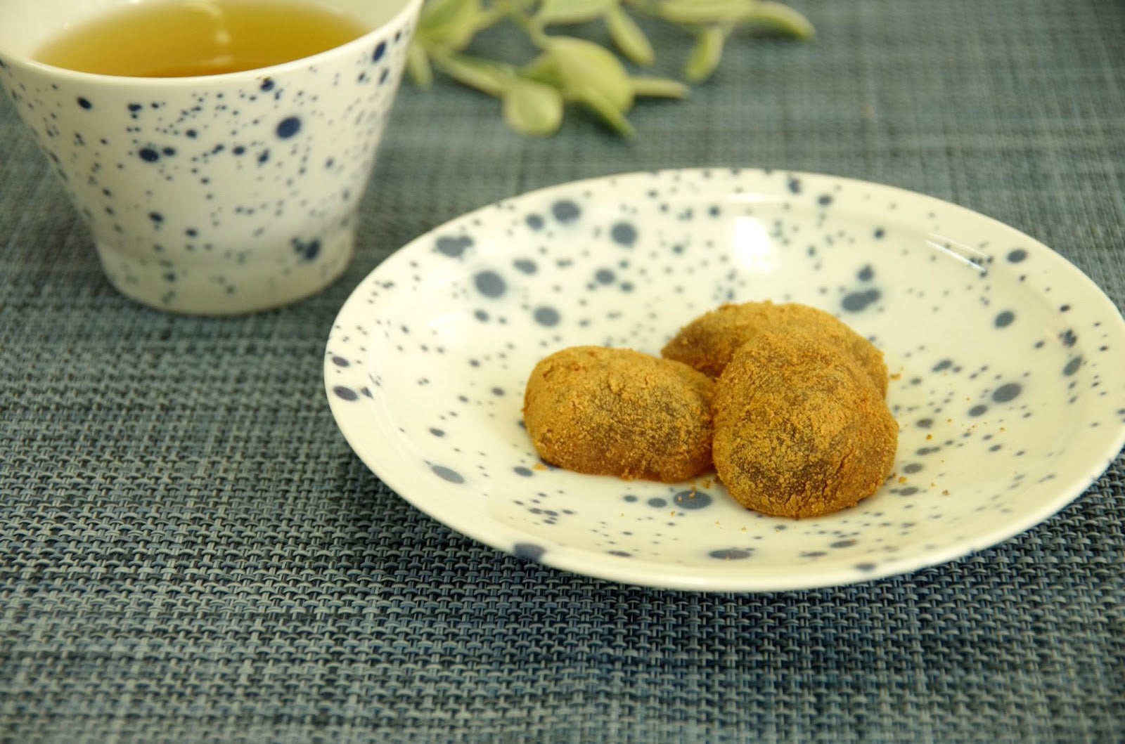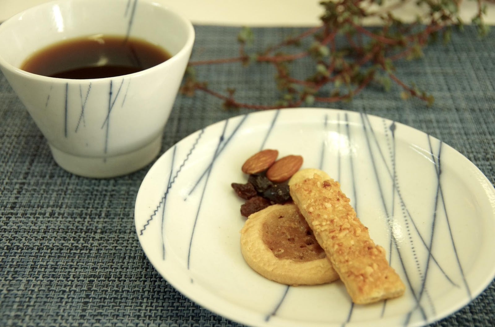 スタイリッシュなデザインのお皿にも和菓子と緑茶がマッチしています。