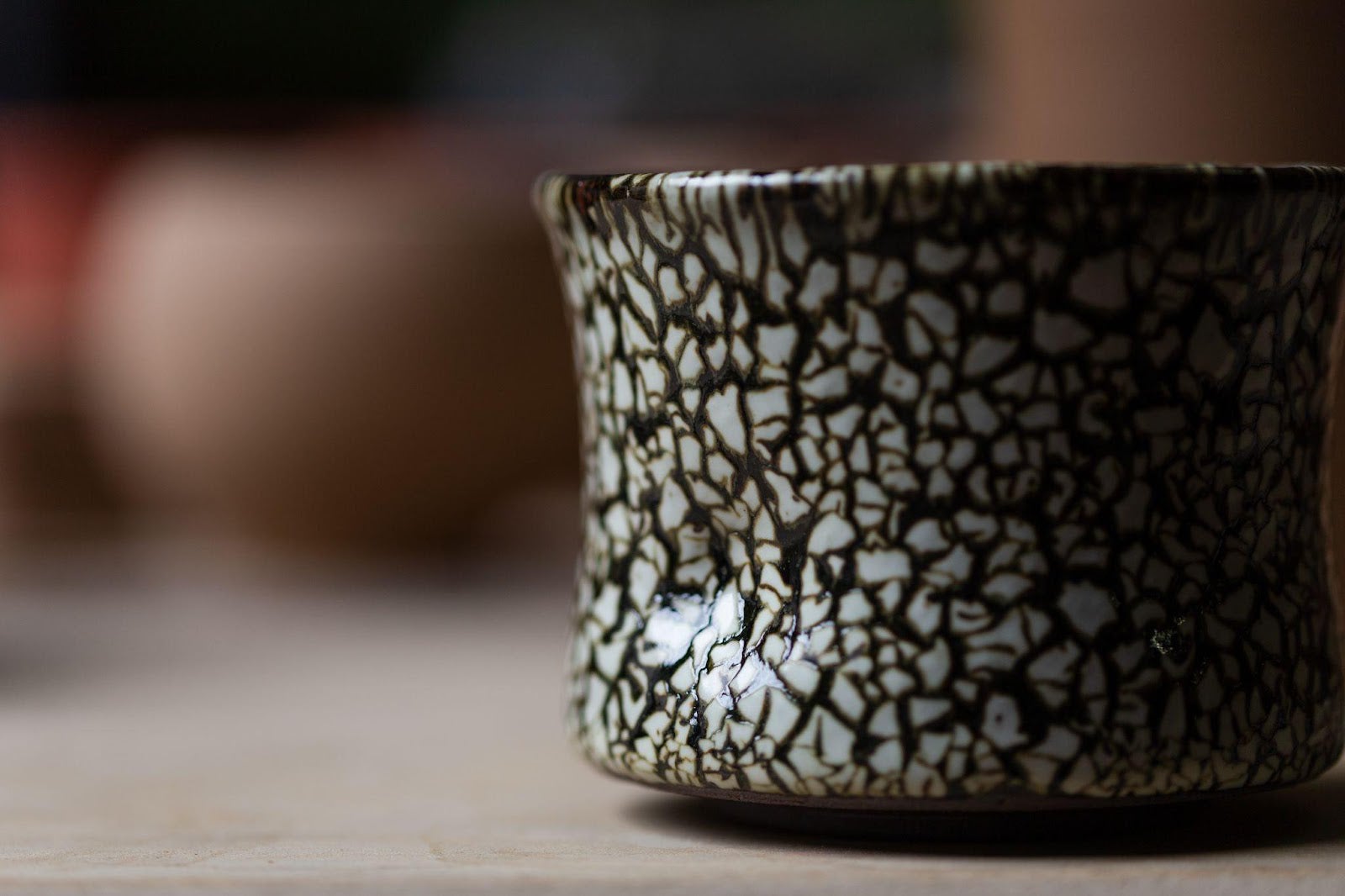 梅華皮と蛇蝎は、土と釉薬の収縮率の違いによって生じるヒビを表現として用いる技法です。