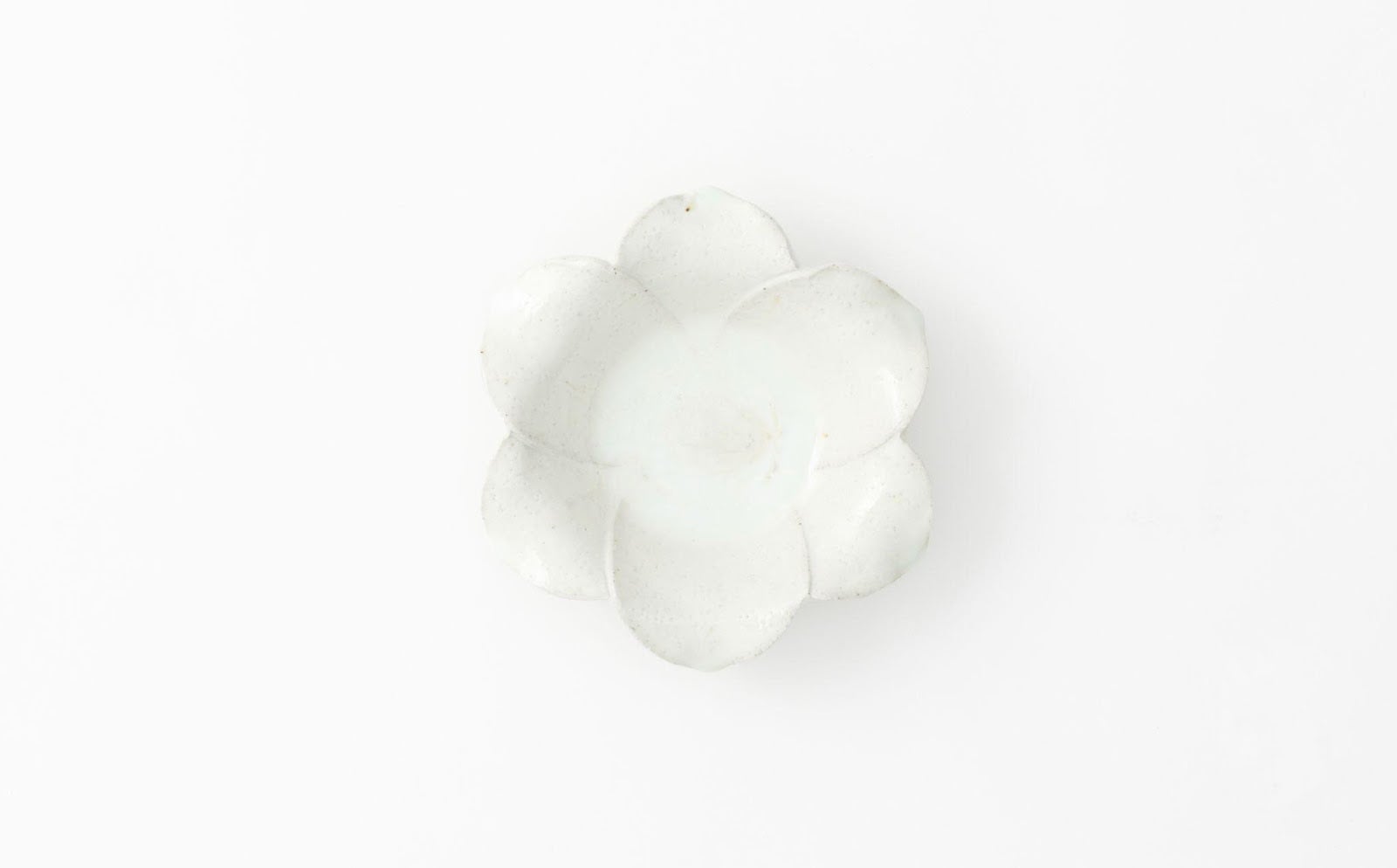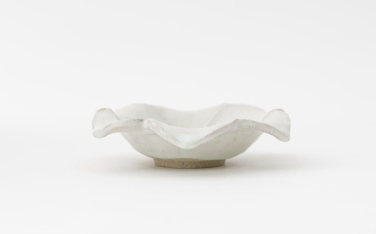 百合をモチーフに成形されています。たおやかな花弁のフォルムや淡い青色に発色した釉溜まりが非常に美しい品です。