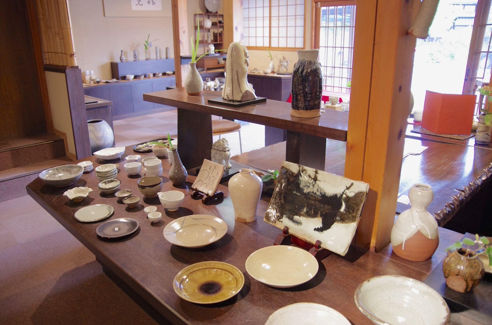 伝統的な唐津焼の茶器、食器、花器、酒器から、現代生活に合わせたモダンな作風の作品まで幅広い商品を手にとって見ることができます。