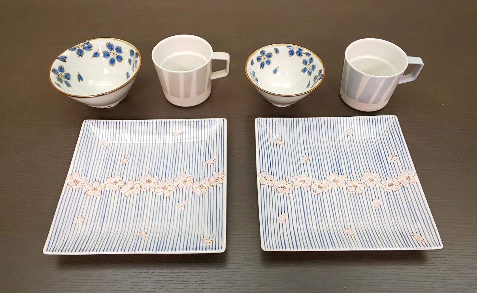 ヤマト陶磁器の目利きの営業部長さんに選んでいただいた角皿、茶碗、マグカップのペアセットです。