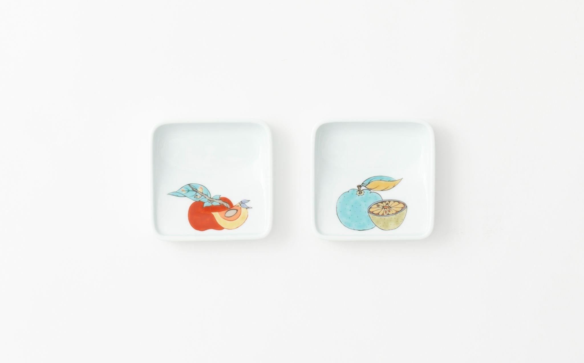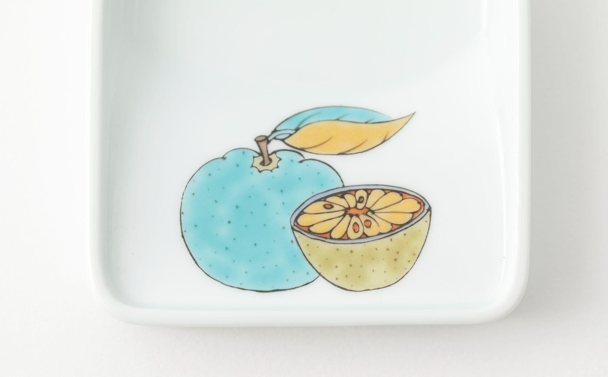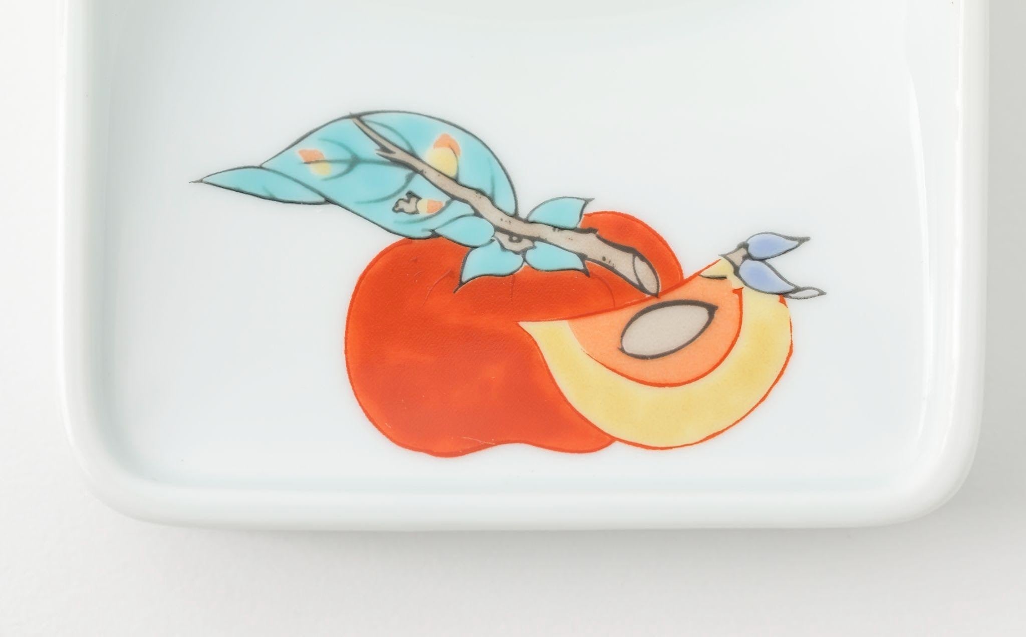 ①有田焼/窯元伊兵窯/減塩味わい皿正角 かぼす&柿