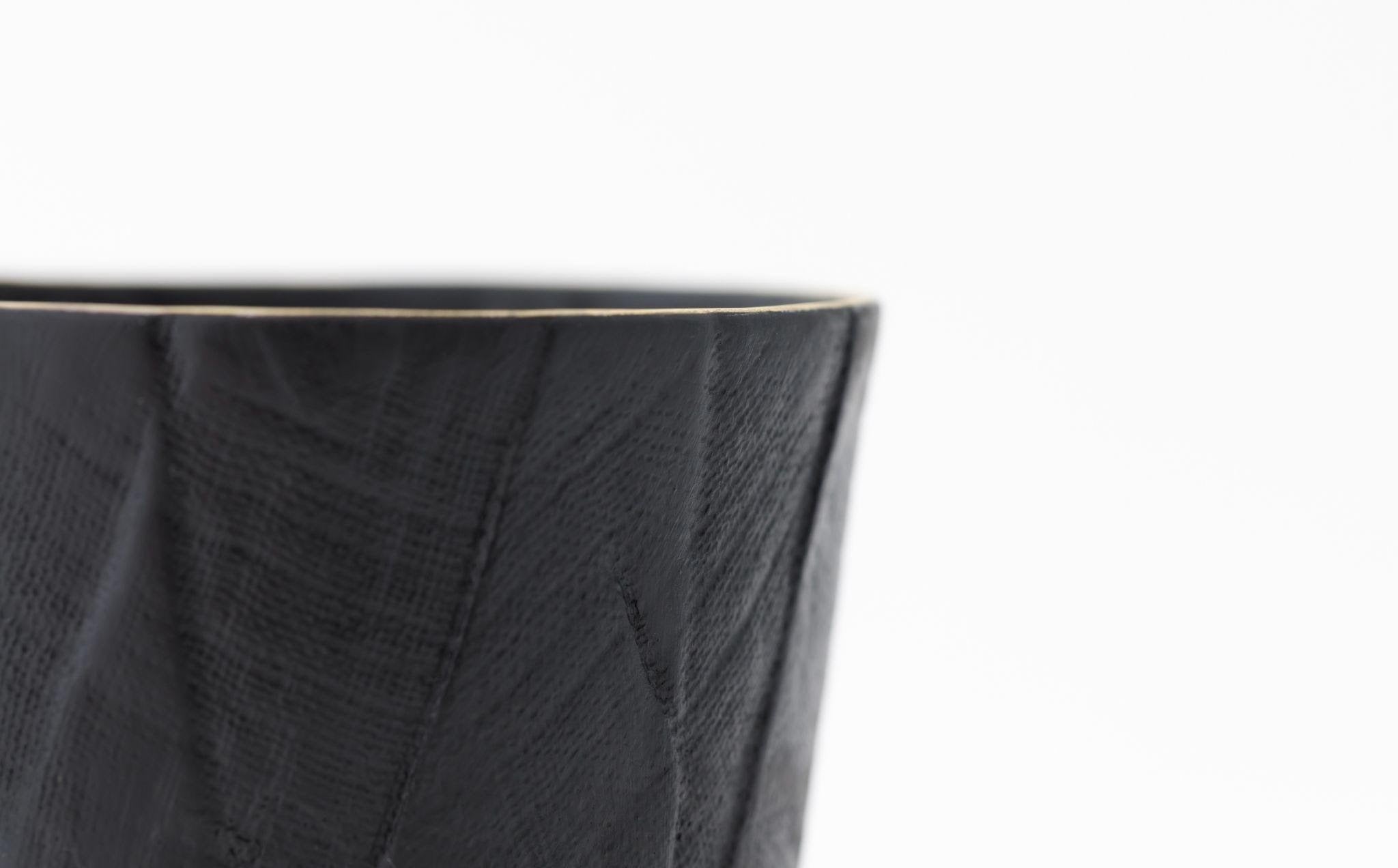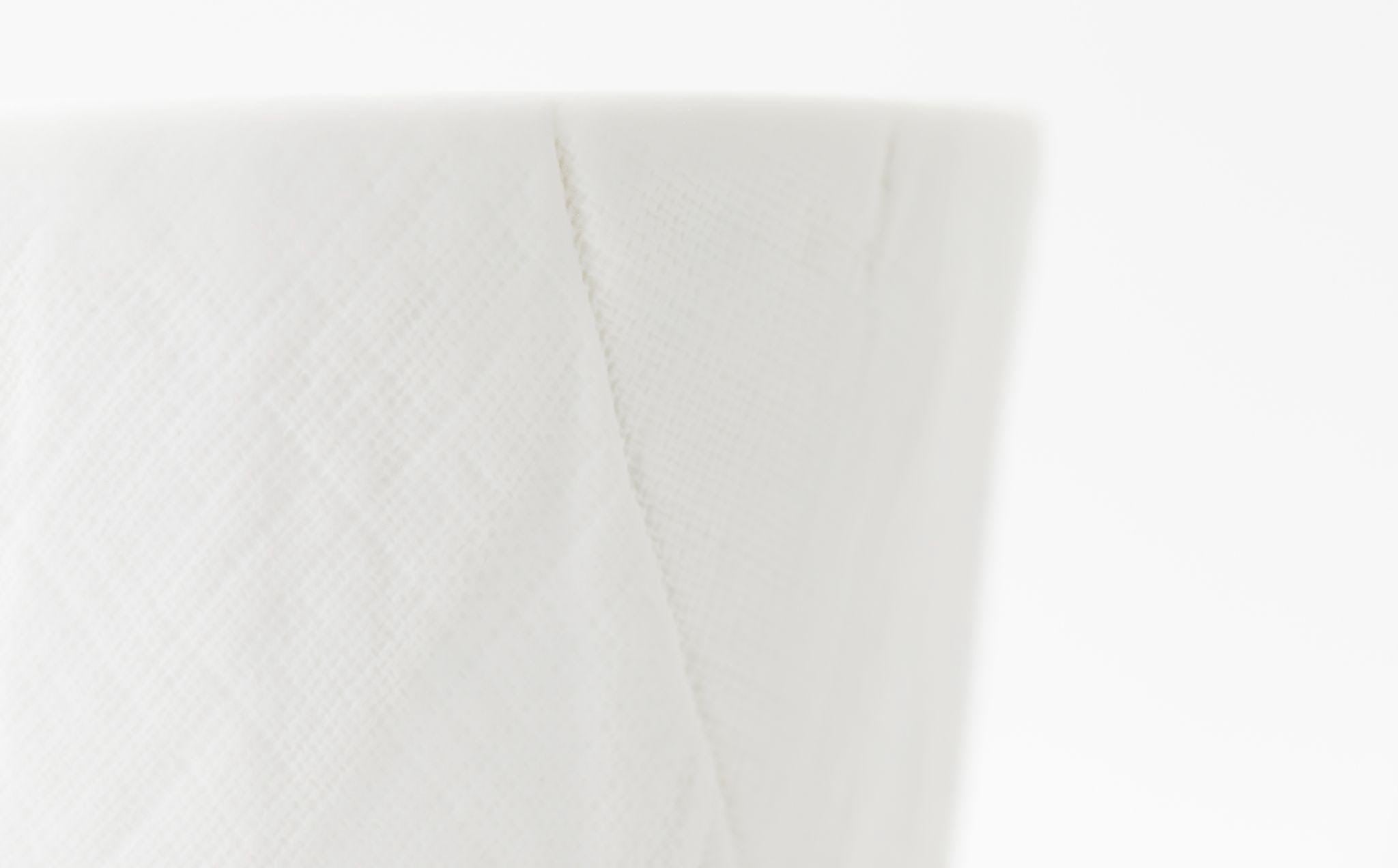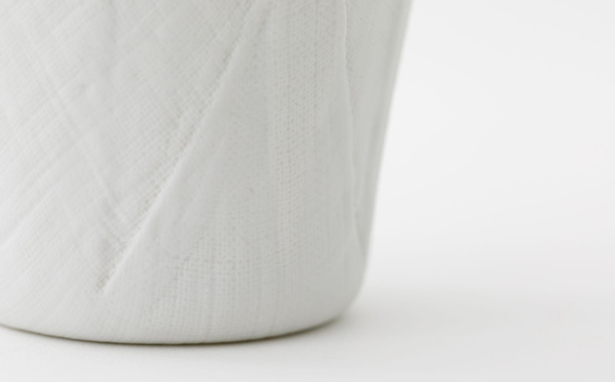 手捻りの技法を進化させて生み出した「ceramic mimic fabric」シリーズは、磁器なのに布のような質感を持った不思議な器です。
