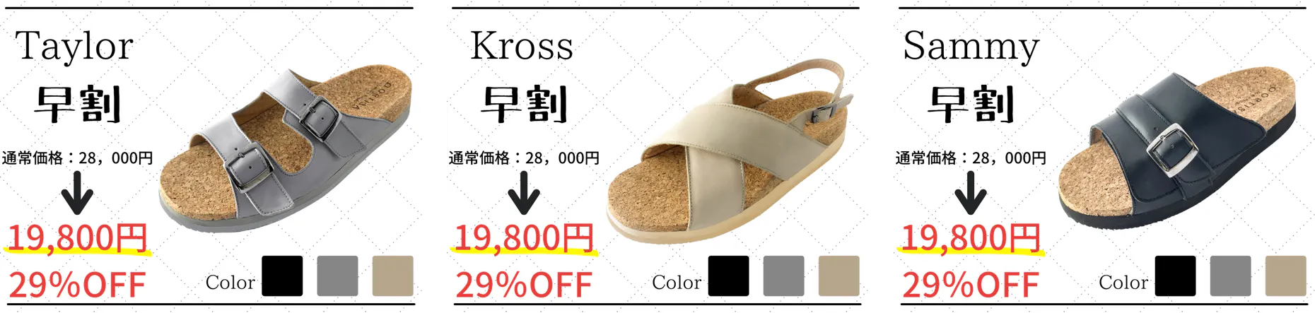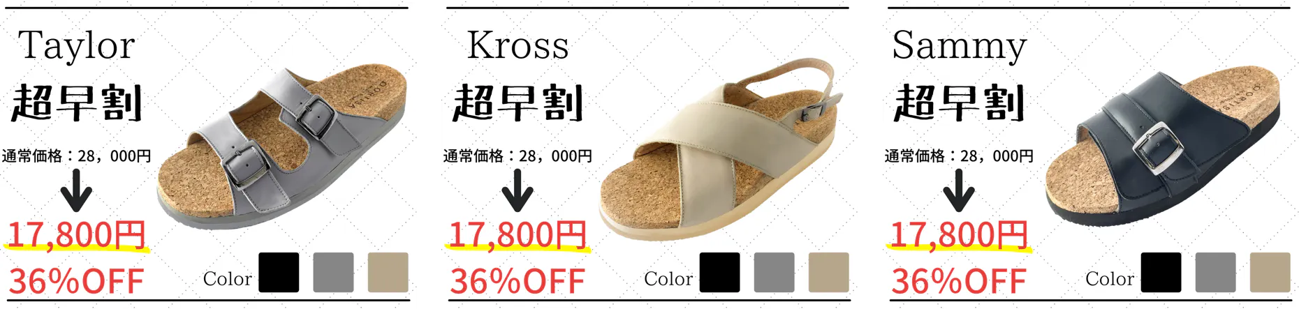 各デザイン限定5足の超早割と各デザイン限定30足の早割