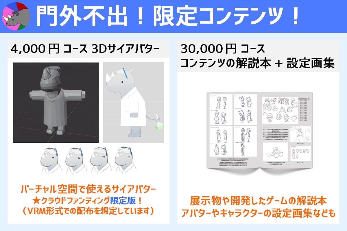 このような活動を行うにあたり必須となる、キャラクターデザイン・3Dモデル作成に資金の一部を充てる予定です。