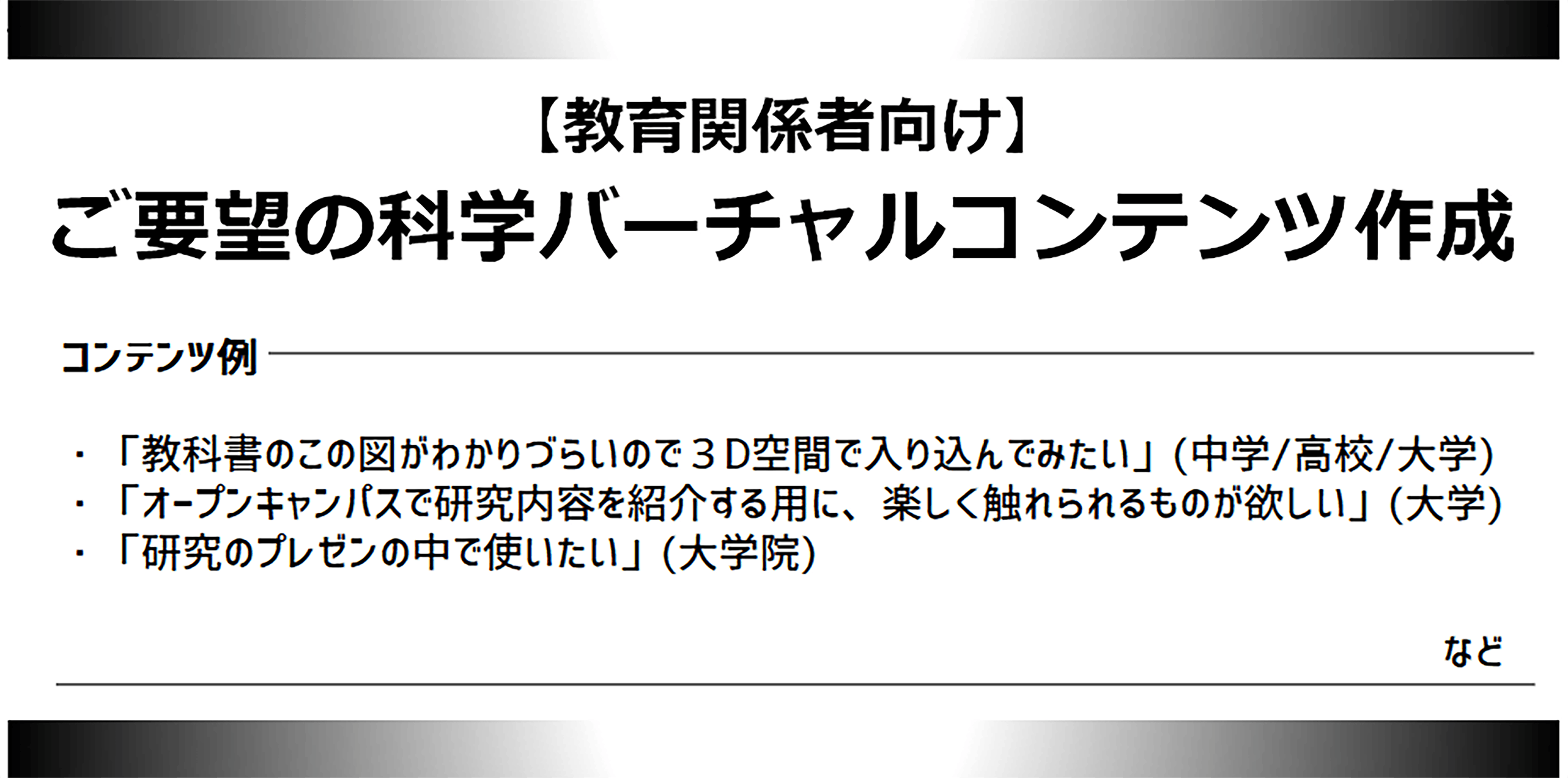 このような失われてしまった科学体験を補うような場として、距離や時間に関係なく、だれでもスマホやPCで“触れられる“バーチャルコンテンツは、強い味方になってくれると確信しています。