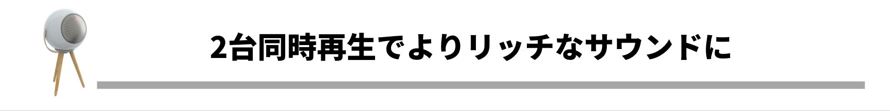 audioBallはTWS(完全ワイヤレス)で2台を接続できます。2台のaudioBallから同じサウンドを流すことでよりリッチなサウンドを楽しめます。