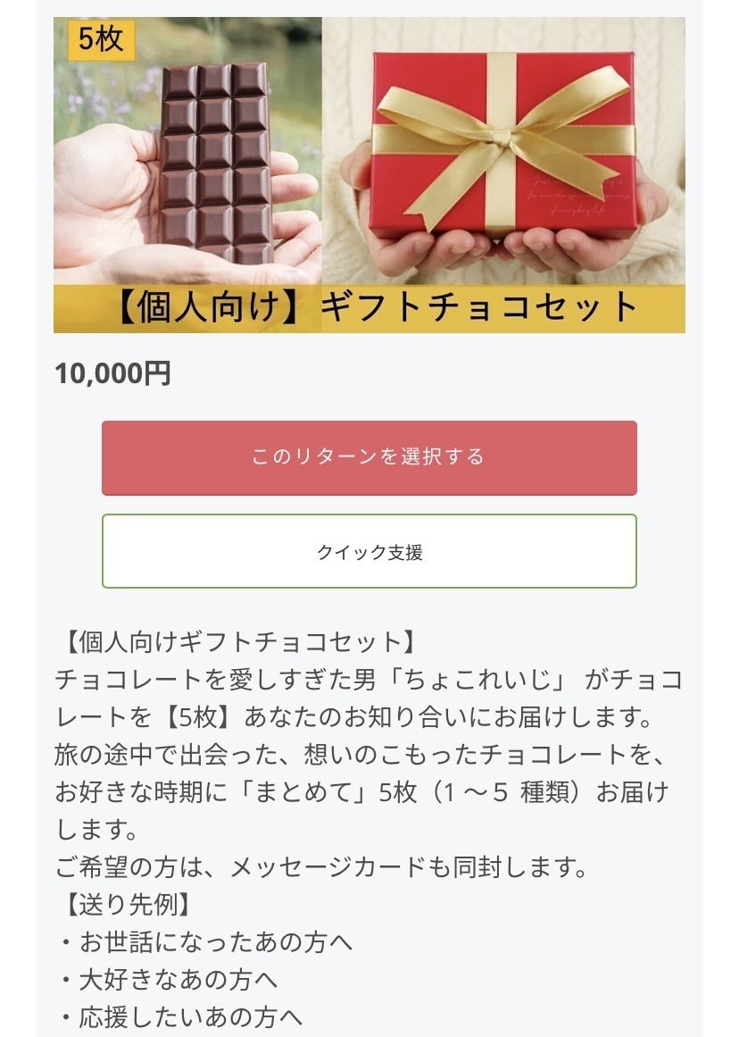 チョコレートをプレゼントとして、お知り合いの方などに送りたい人向けにご用意致しました。ご家族などで楽しんで頂けるように「5枚、まとめて」お送りします。