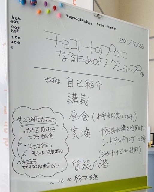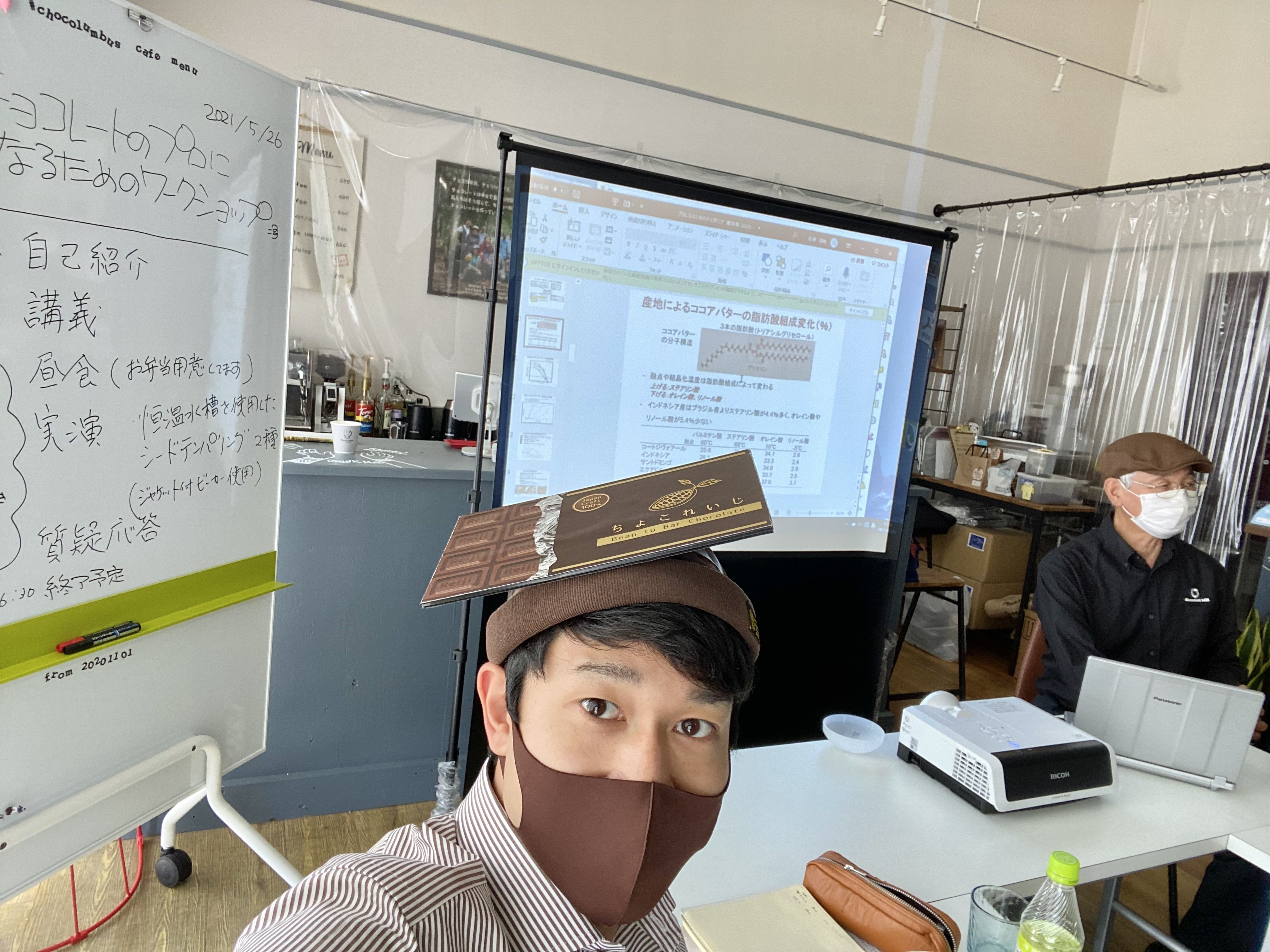 また、クラウドファンディングの告知と並行して、少しずつ旅立つ準備も進めています。まずは、北九州の「チョコロンブス」で開催された 「チョコレートのプロになるワークショップ」を受講しました。講師として、私のチョコの師匠でもある広島大学名誉教授の佐藤清隆先生をお招きしてのセミナーです。