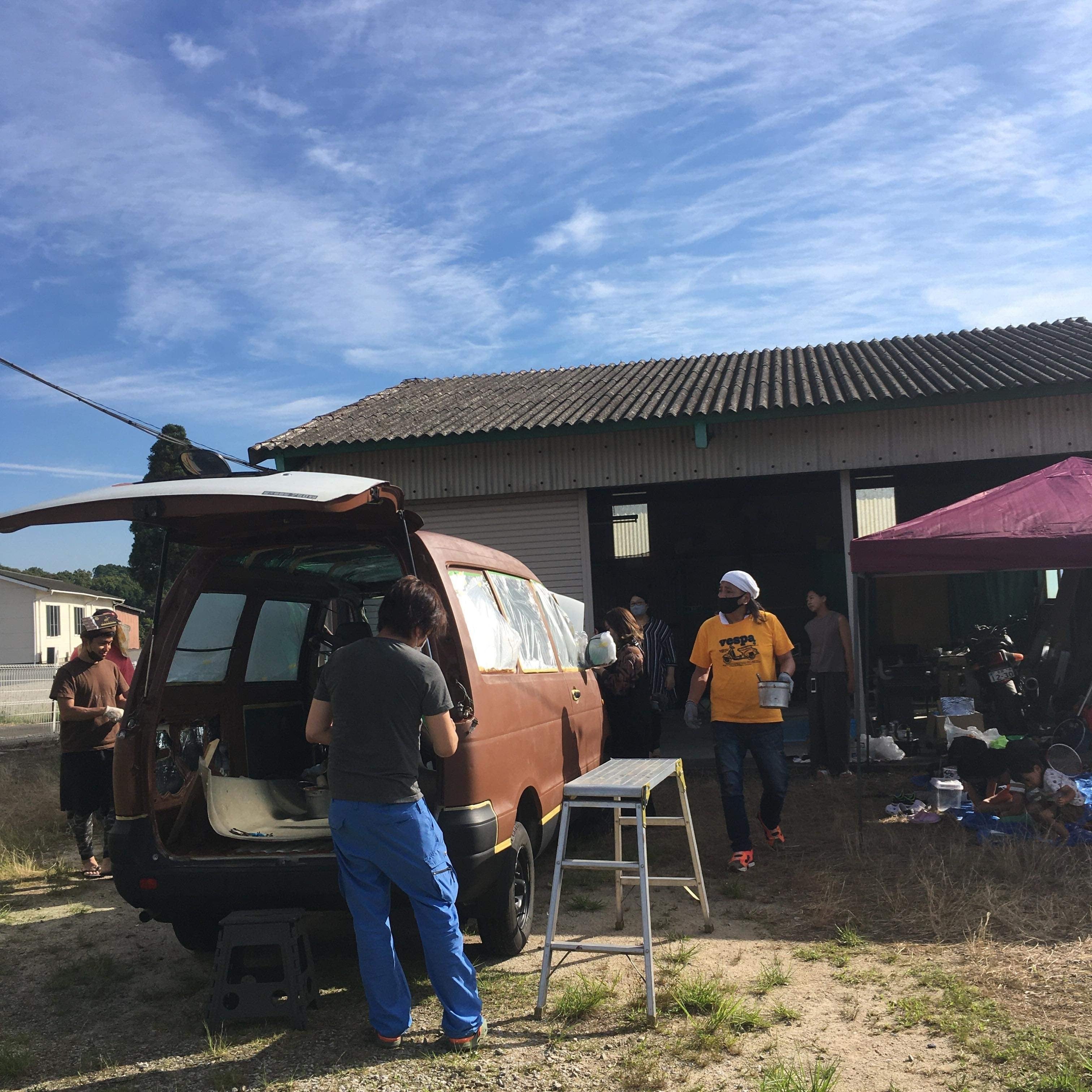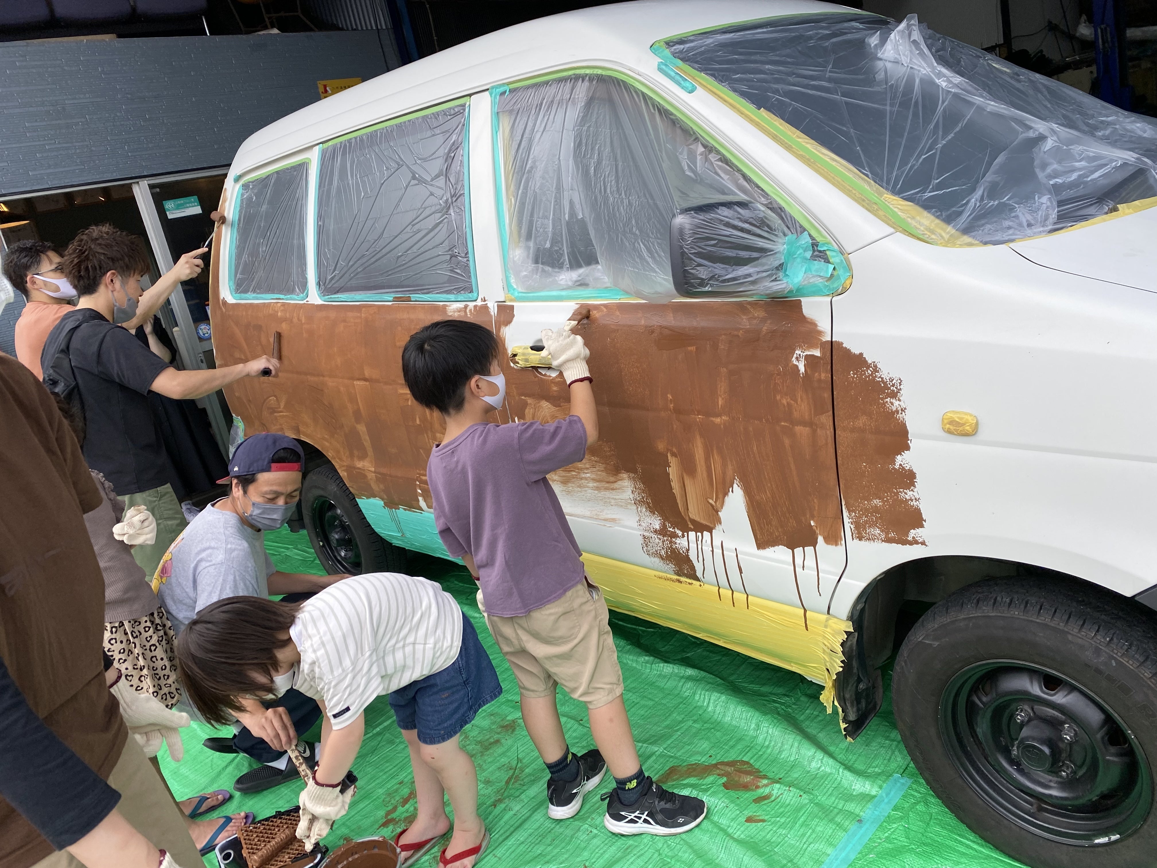 とても天気のよい晴天で、大人も子供も混ざりながら、カフェでバナナスムージーを飲んだり、ほどよく休憩しながらも、大人の方は特にだいぶ真剣に塗って下さいました!
