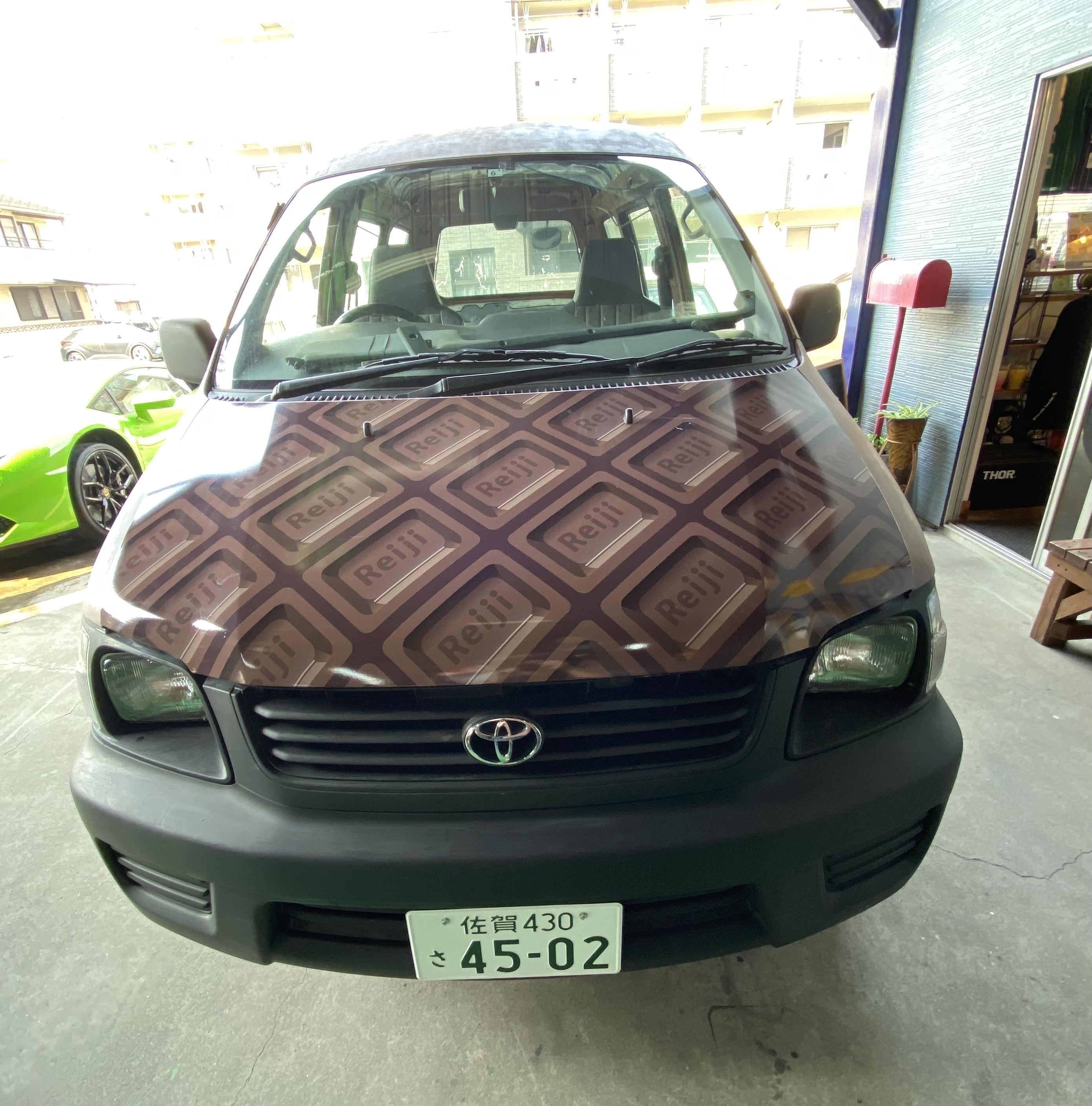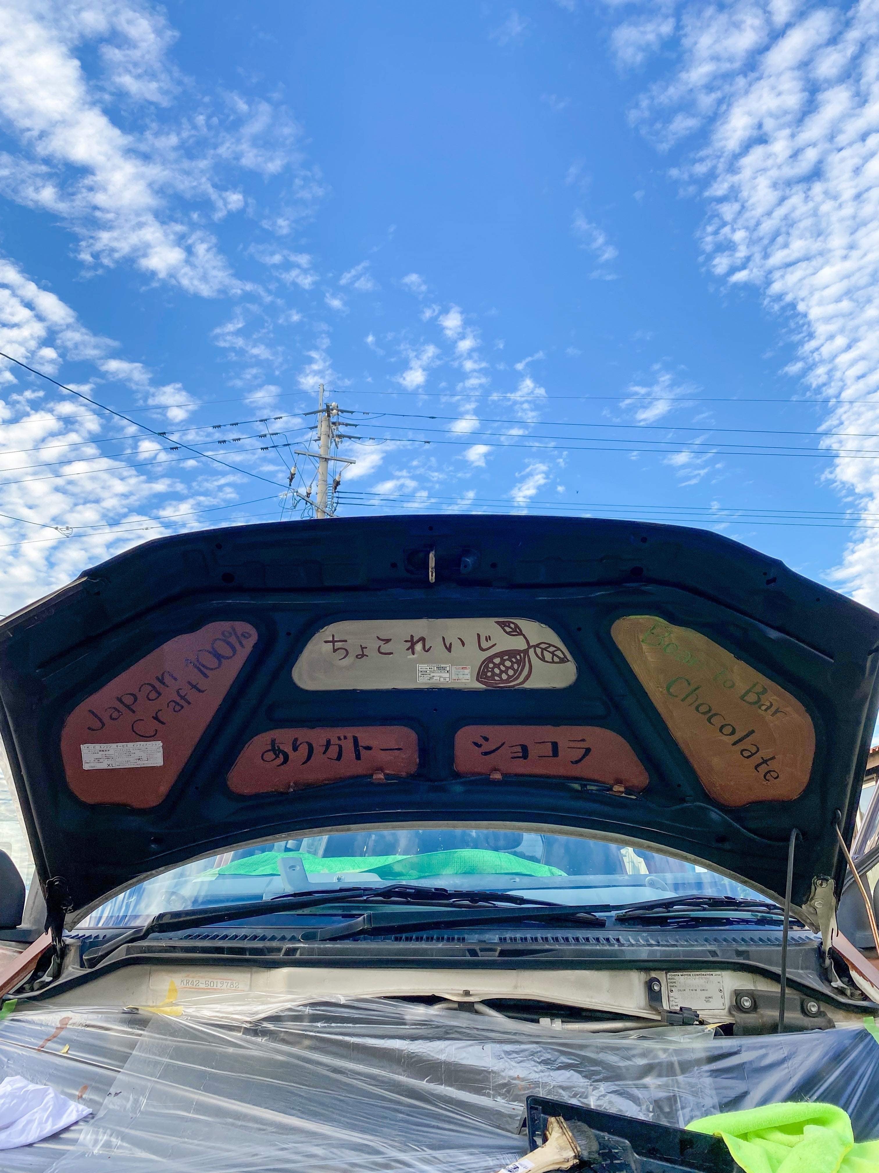 そんな中、なんとかチョコカーの外側の塗装と、チョコラッピングまで終わりました!