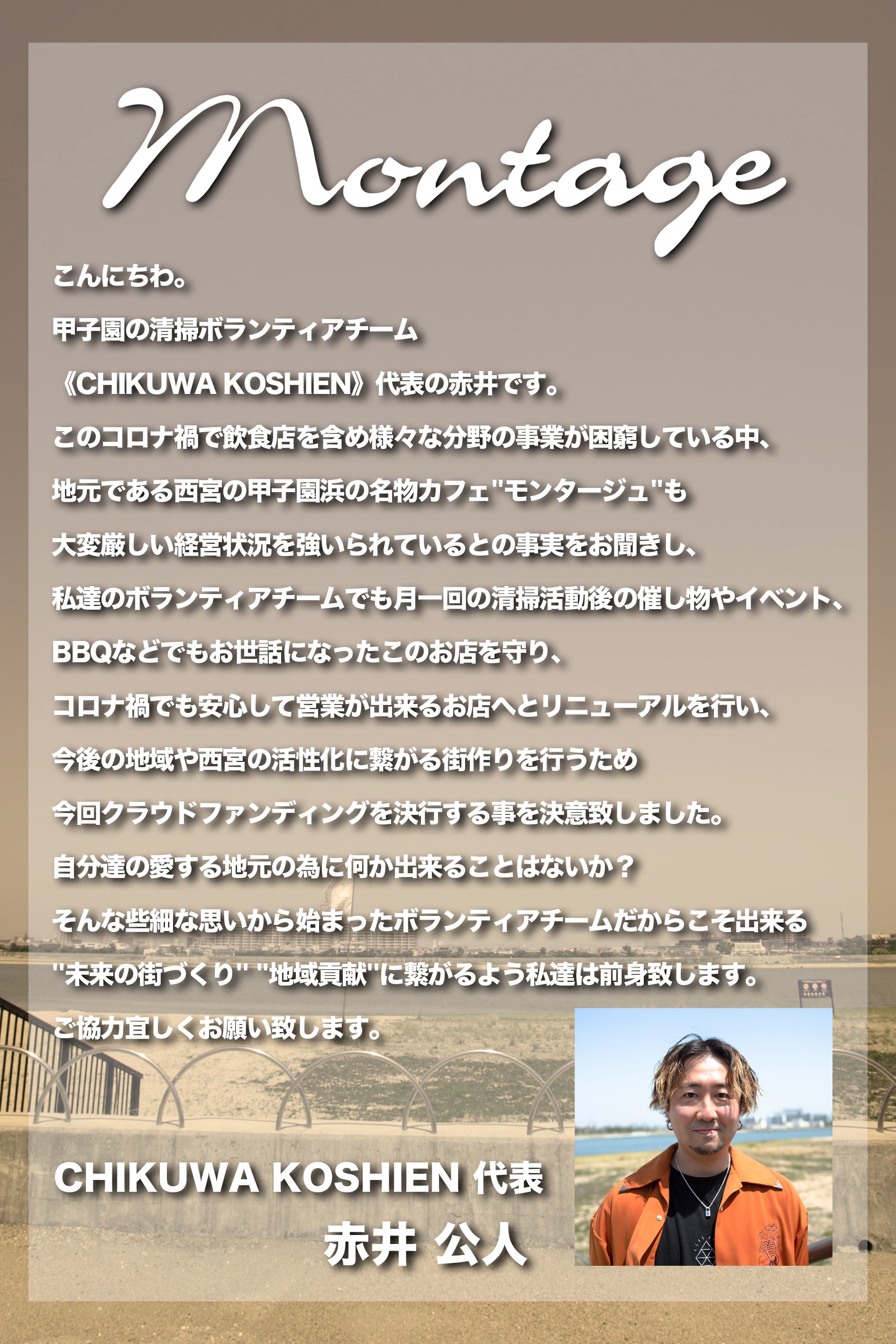 数々のイベントオーガナイズやプロデュースを経験してきた代表の赤井氏とエンタメクリエイターチームによる企画として音楽ライブやDJ、パフォーマーによる演出。リニューアルされたお店のお披露目を行いモンタージュや甲子園浜をPRするイベントを開催。