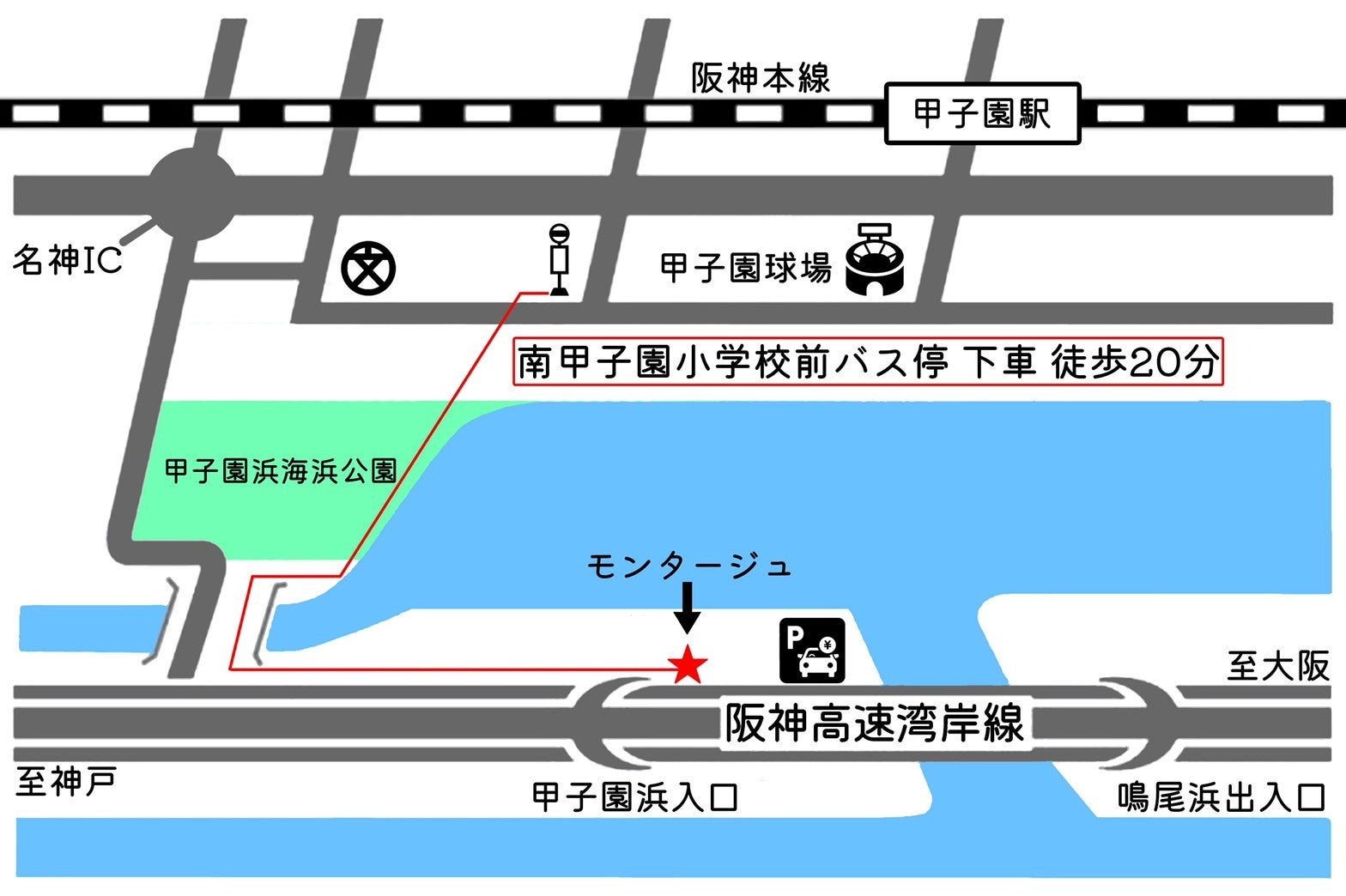 阪神高速湾岸線 鳴尾浜出口から5分、西宮浜出口から5分。