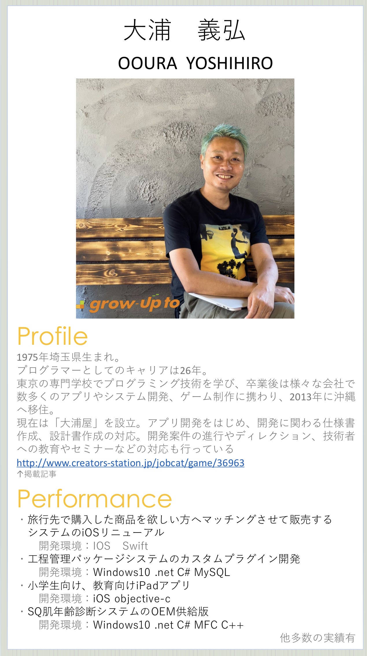 1975年埼玉県生まれ。プログラマーとしてのキャリアは約26年。東京の専門学校でプログラミング技術を学び、卒業後は様々な会社で数多くのアプリやシステム開発、ゲーム制作に携わり、2013年に沖縄へ移住。現在は企業をし、全国のアプリやシステム開発に携わっています。