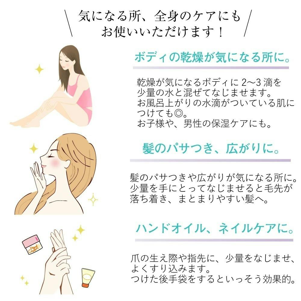 肌にスーッとなじみ、たった数滴でもお肌に潤いが持続します。