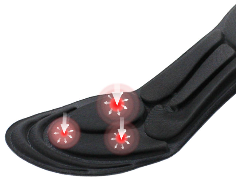 柔らかいエアパッドが体重の圧力に合わせて負担を効果的に軽減します。心地の良いフィット感を実現し、効果的に足への負担軽減をサポートします。