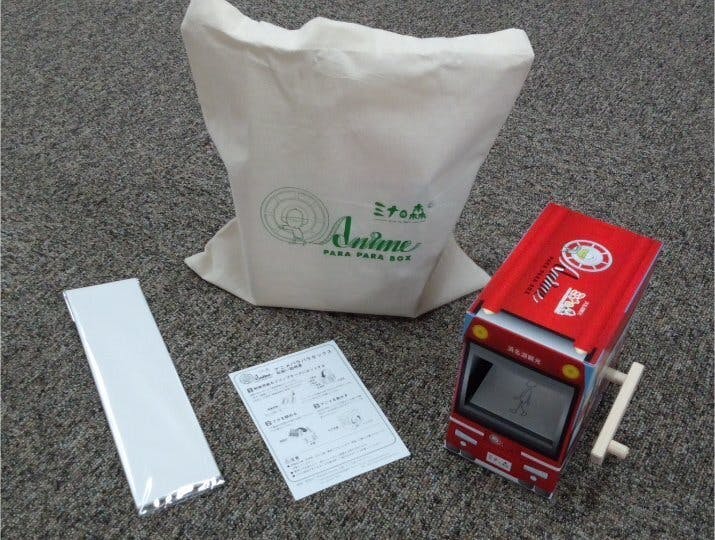 アニメパラパラボックスは16枚のイラストや写真を箱の中にセットし、ハンドルを回すことでイラストや写真が動きだすもので、教科書の隅に落書きした「パラパラ漫画」を仕組みとして再現した箱と言えばイメージしやすいかも知れません。
