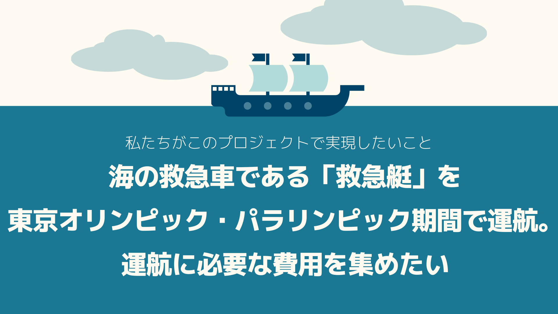 私たちはこの「救急艇」を運航するにあたって必要な費用を集めるため、このクラウドファンディングプロジェクトを立ち上げました。このプロジェクトは東京消防庁や都内の医療機関と連携し、医師および救急救命士を確保することで実現させます。しかし、大会期間中に最後までしっかり運営を行うには運航費用がさらに必要なのが現状です。