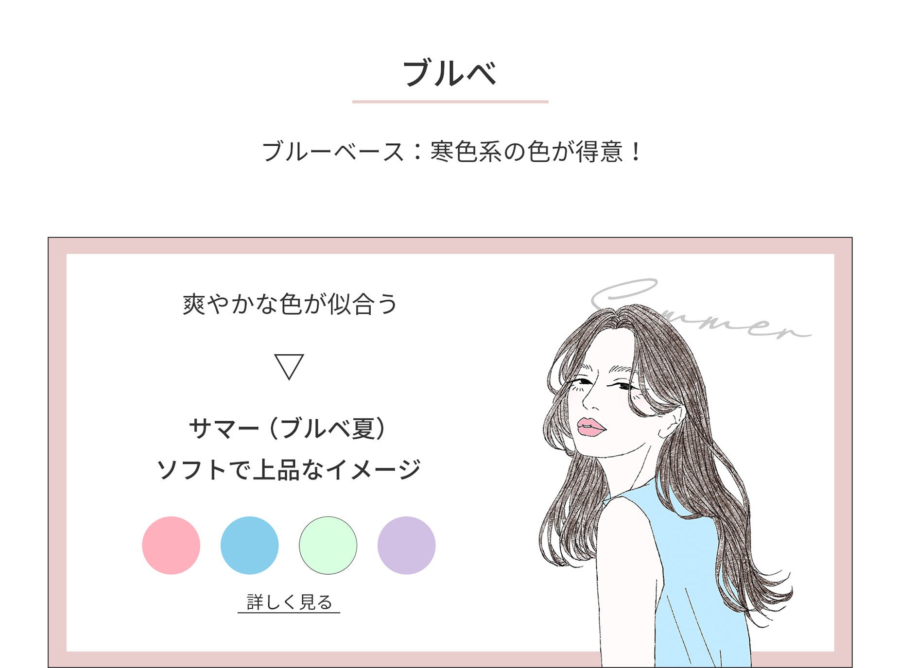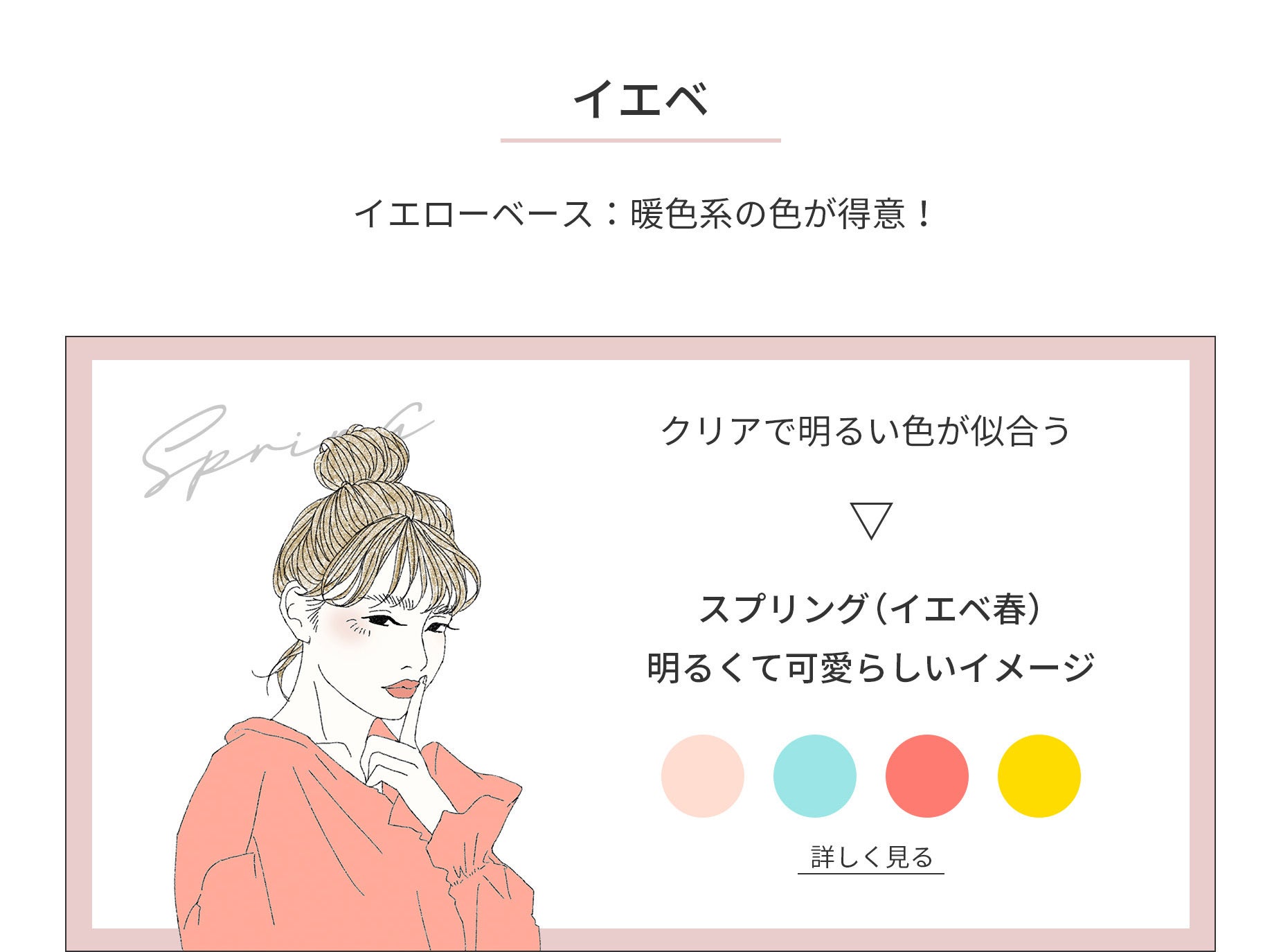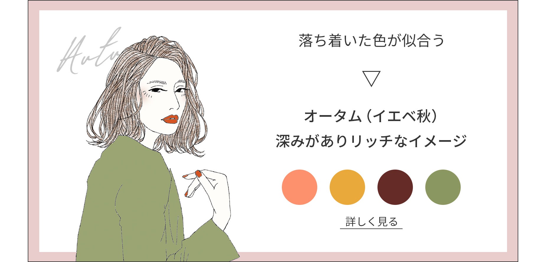 パーソナルカラーとは、1人1人が生まれながらに持つ、肌や瞳の色に調和する色のこと。スプリング・サマー・オータム・ウィンターの4つのタイプに分類されます。パーソナルカラーを身につけることで、自身の魅力を引き出したり、なりたいイメージに寄せたり、自分自身をより美しく見せることができます。