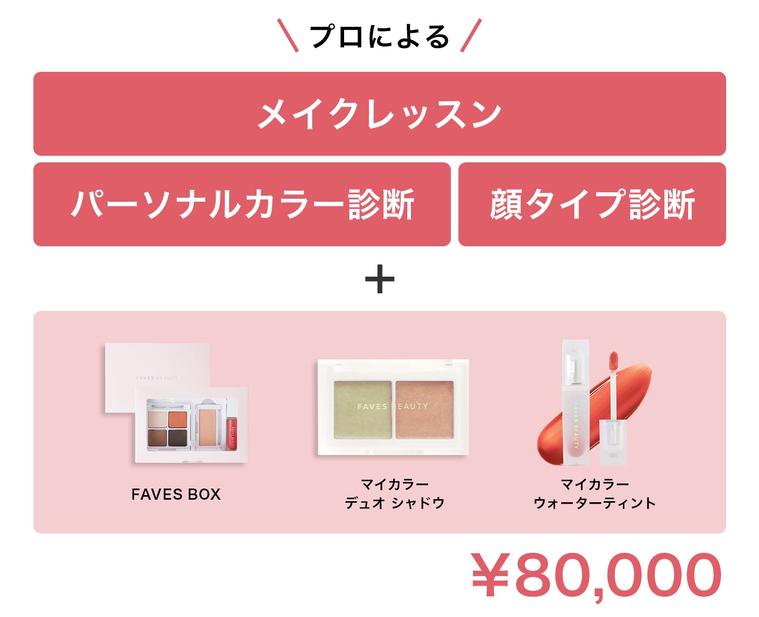 FAVES BEAUTYの商品と、弊社指定のプロのパーソナルカラーアナリストによるメイクレッスン&パーソナルカラー診断&顔タイプ診断(すべてオンラインで実施)をご提供!流行りの顔タイプ診断で自分に似合うメイクが明確に♪