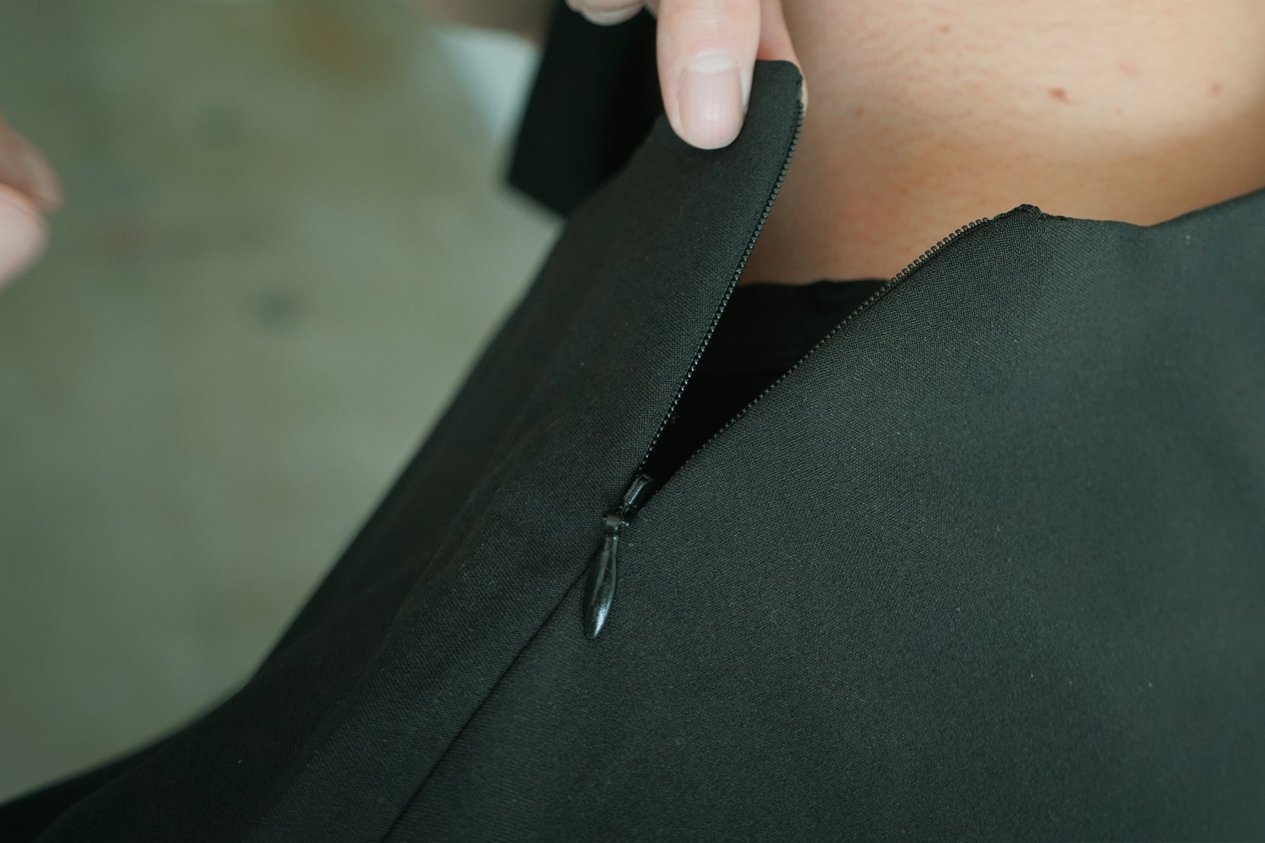 ボタンを使ったプレーンなシャツも検討しましたが、着脱や洗濯で劣化しやすいというデメリットも。耐久性を考えて、今回は左肩にコンシールファスナーで着脱するプルオーバータイプのシャツにしています。