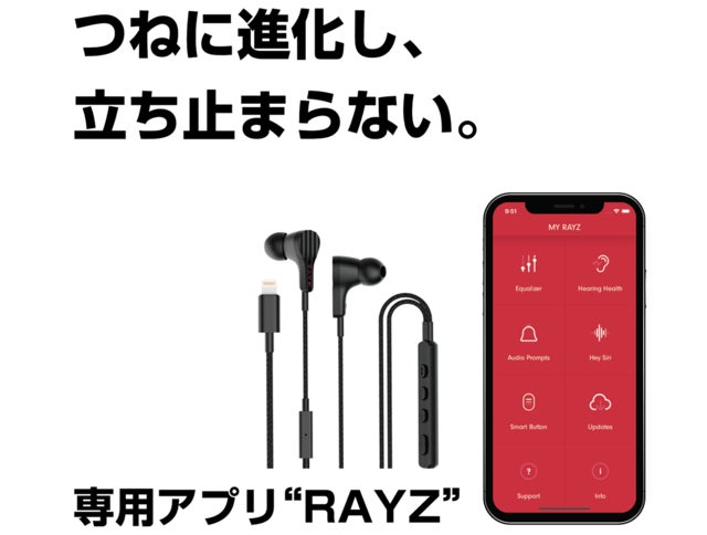 Rayz は Apple エコシステムを開発したオーディオチームと日本のチームが協力し、開発しました。 オーディオ開発に豊かな経験を持つチームにより生み出された Rayz は、スマート・イヤホンという新しさだけでなく、有線イヤホンとしての使いやすさも追求しています。