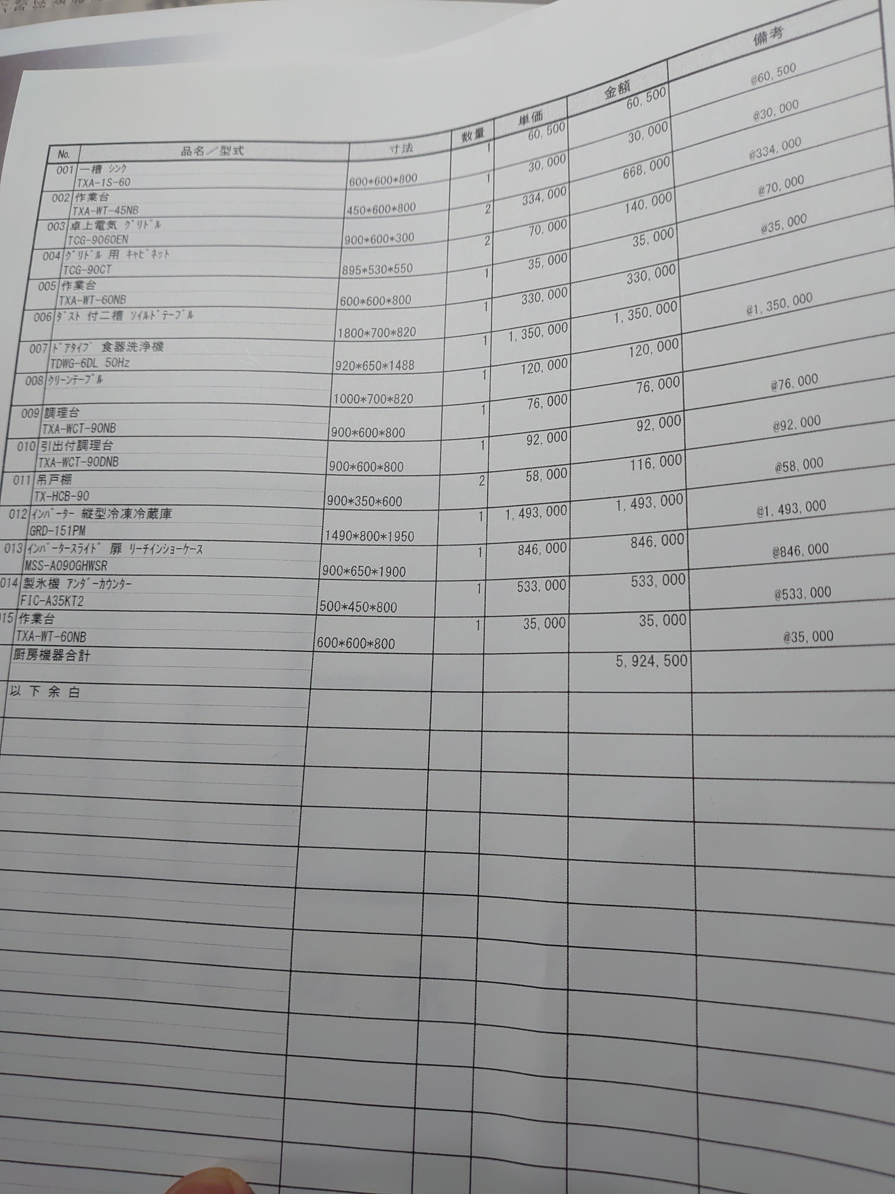 厨房機器600万円。。。。
