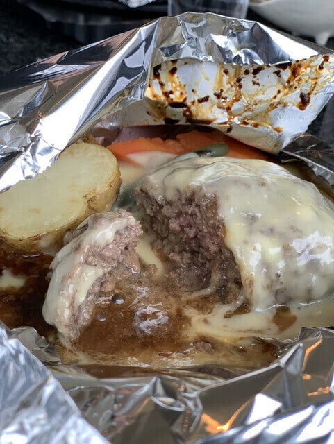 星空の黒牛のひき肉を使った、ホイール包みハンバーグ+ごはん+味噌汁付き