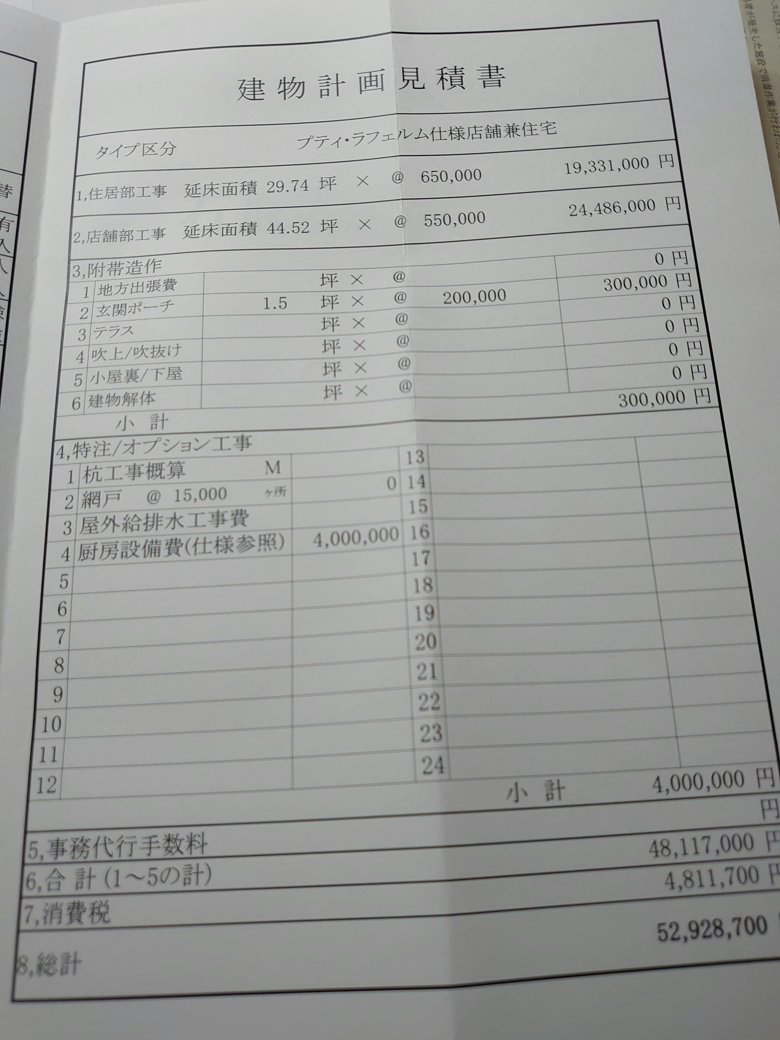 お店を出したい地区を決め、工務店さんを決め、見積もりを出してもらうまでは話が進みました。